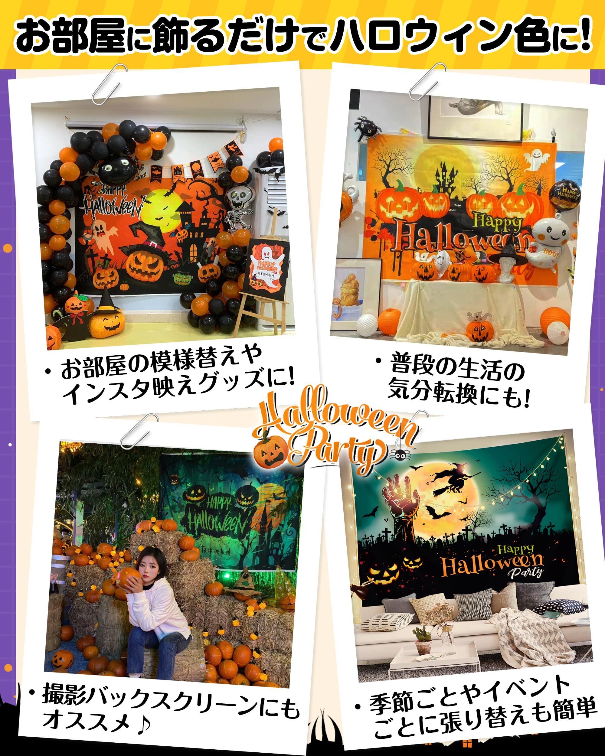 【ハロウィン気分になれる鮮やかなデザイン】コウモリ、お化け、ジャック・オー・ランタンなど個性豊かな大人気ハロウィンキャラクターが勢ぞろい。ハロウィンカラーの鮮やかなデザインで、大人も子供もハロウィン気分に浸れます。目隠しにもなる便利なタペストリーは、お部屋の雰囲気をガラっと変えることができます。