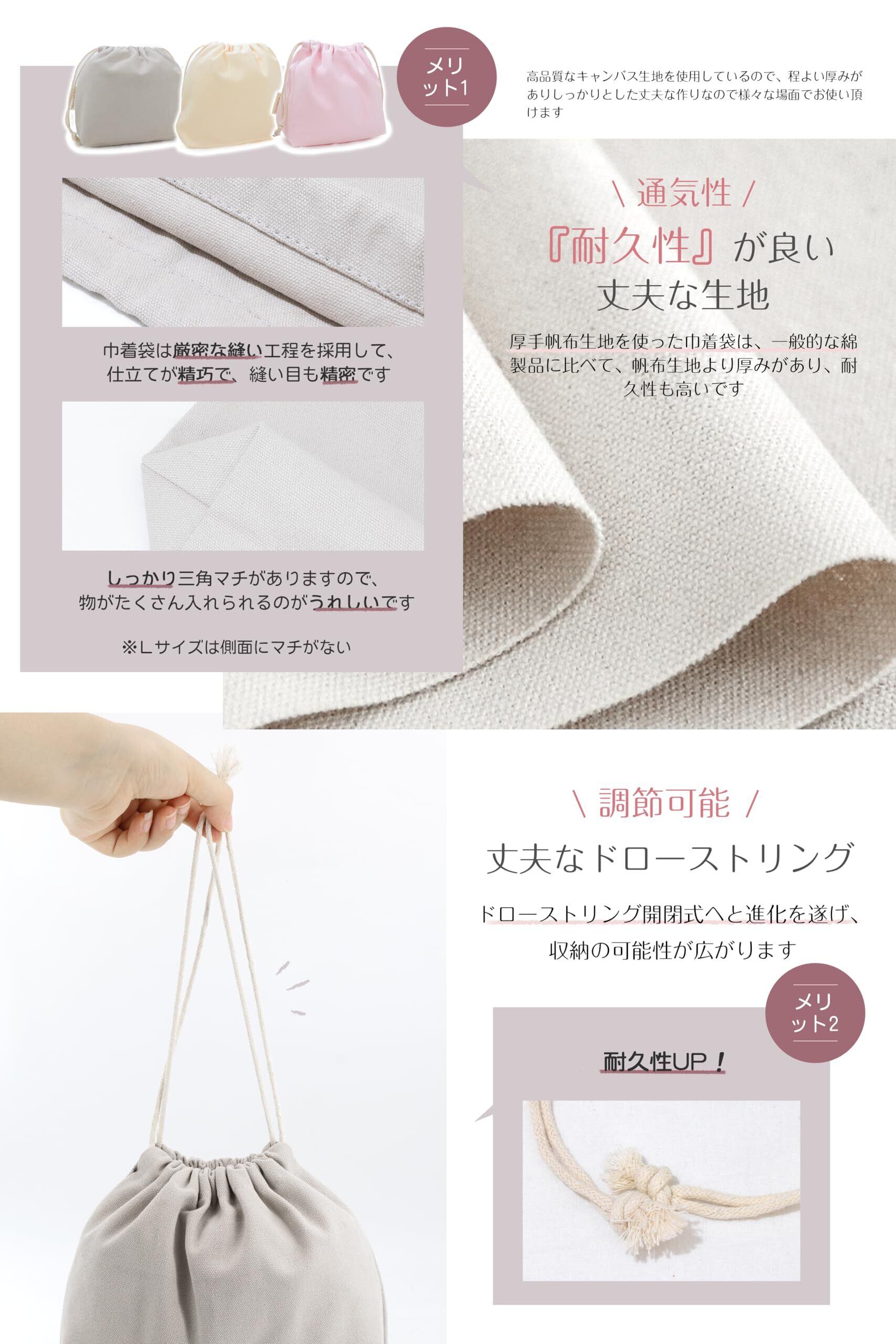 巾着袋 小 大 無地 巾着 おしゃれ かわいい 【Poco'ce掲載・21色展開・緋色】 帆布 きんちゃく袋 大きい こども インナーバッグ 巾着ポーチ 巾着 (緋色S)