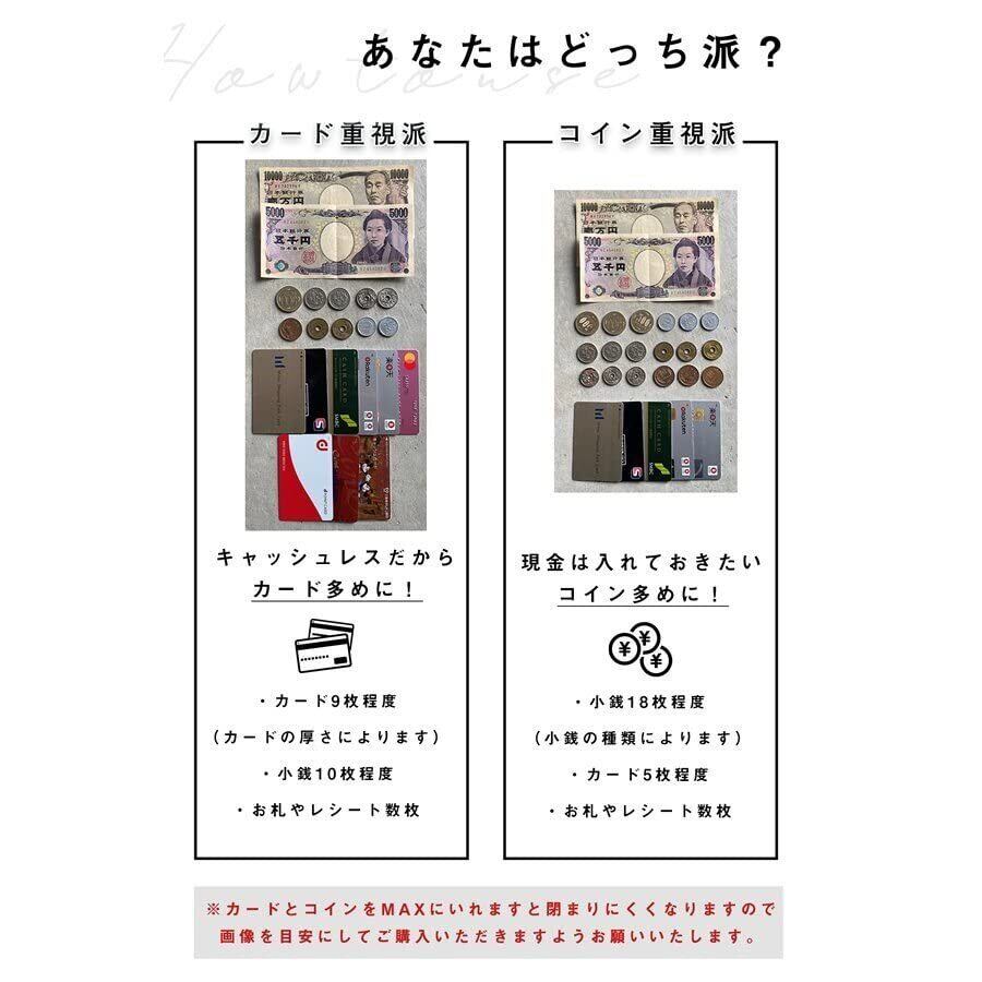 ずっと触っていたい、柔らかで温かみのある触り心地のあるミニ財布。美しいシボ感のレザー。 品質 素材 風合い さらに防犯性も。最大180度開くじゃばら式で取り出したいカードも一目瞭然。 カードポケットは全部で9つ。財布に入りきらないカードを効率的に収納。小銭入れはBOX型を採用。 大きく開いて見やすく、取り出しやすい。 両サイドのポケットは広めに作られているので、 お札を入れたり、レシートや領収書を収納したり、鍵を入れても◎ 機能性・収納力・デザイン、全てこだわりぬいた次世代カードケース。 普段使いからお仕事までシーンを選ばずお使いいただけます。