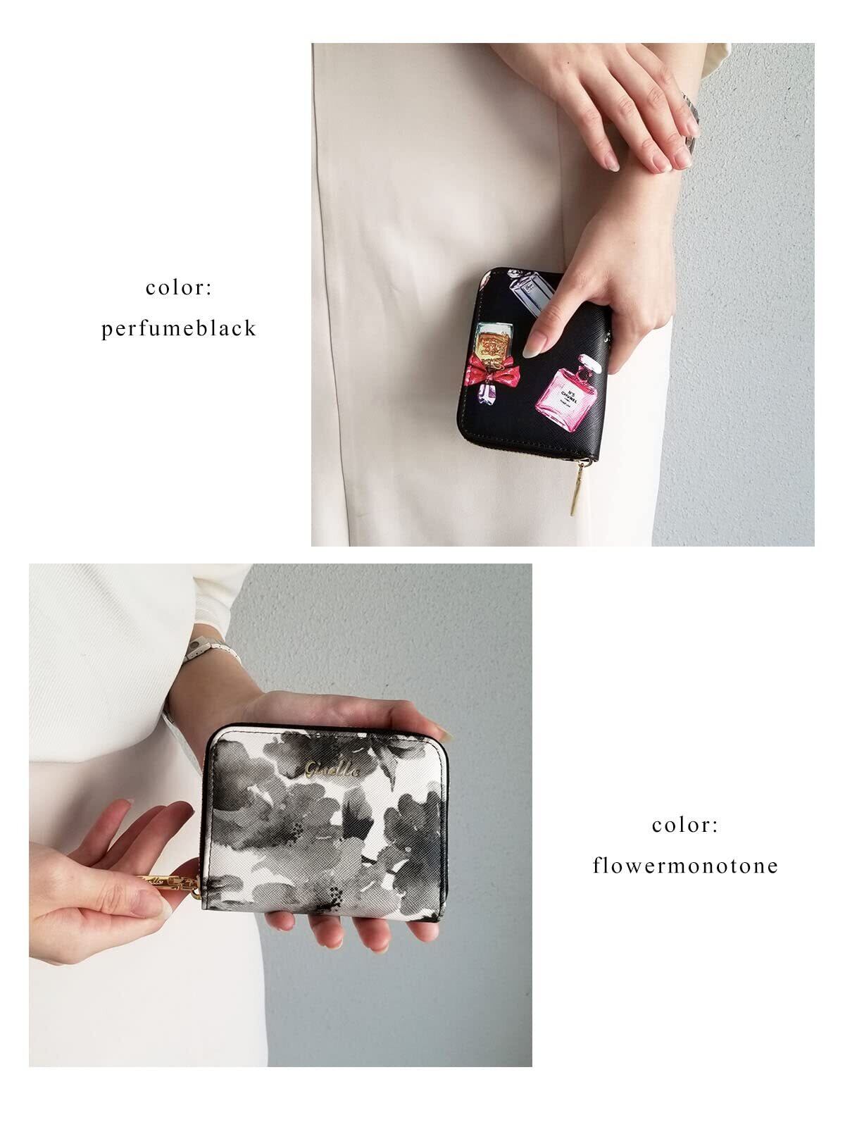 [ジゼル] 財布 ミニ財布 カードケース お札が折れない 大容量 じゃばら スキミング防止 カード入れ 小銭入れ レディース メンズ 選べる22色 コンパクト シンプル(【Lサイズ】 Flower mono/フラワーモノトーン)