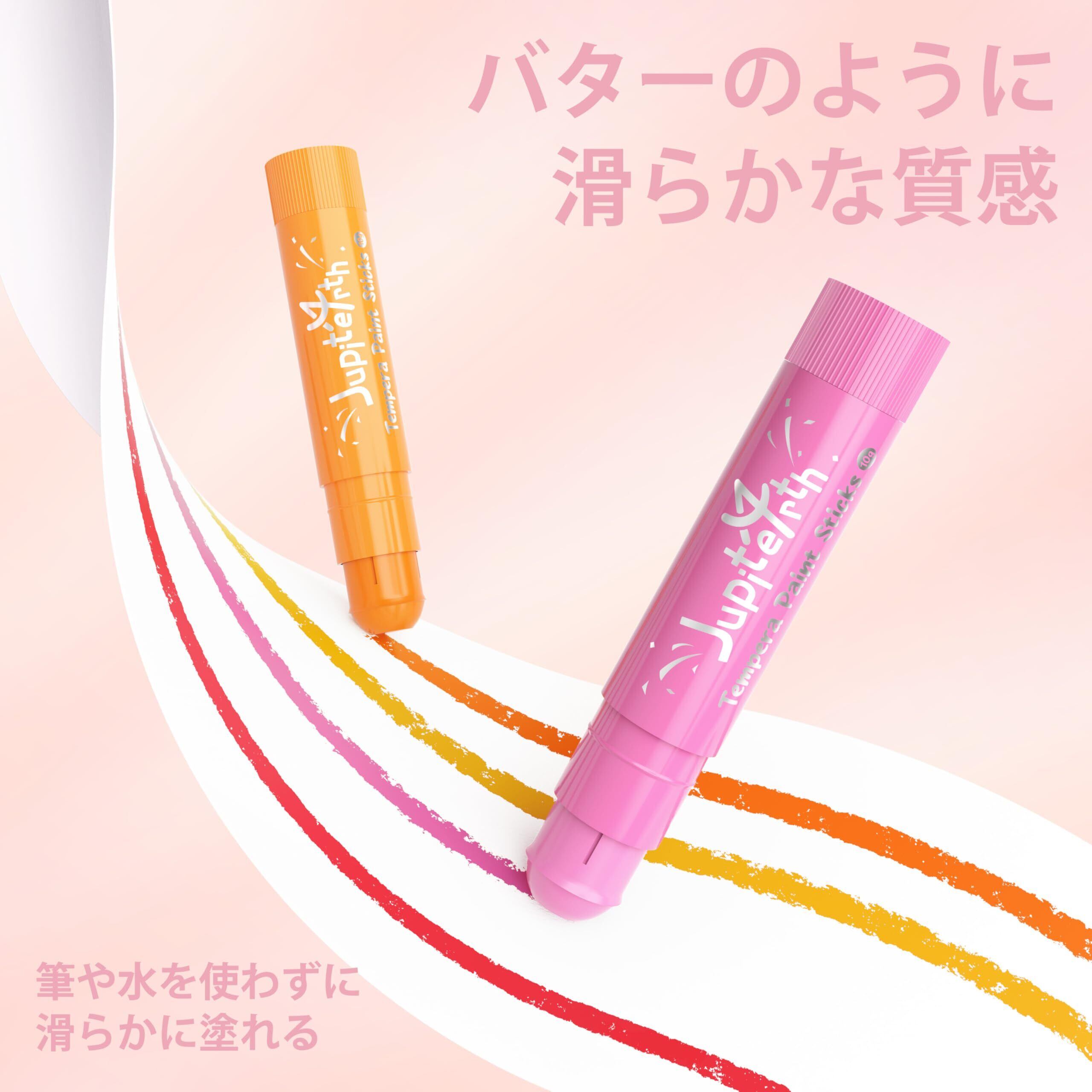 JUPITEARTH テンペラクレヨン 12色 パステルカラー テンペラペイントスティック 繰り出し式 持ちやすい 手汚れない 折れにくい 安全 無毒 水で落とせる 塗り絵 落書き お絵描き 絵の具 セット 小学生 赤ちゃん 幼児