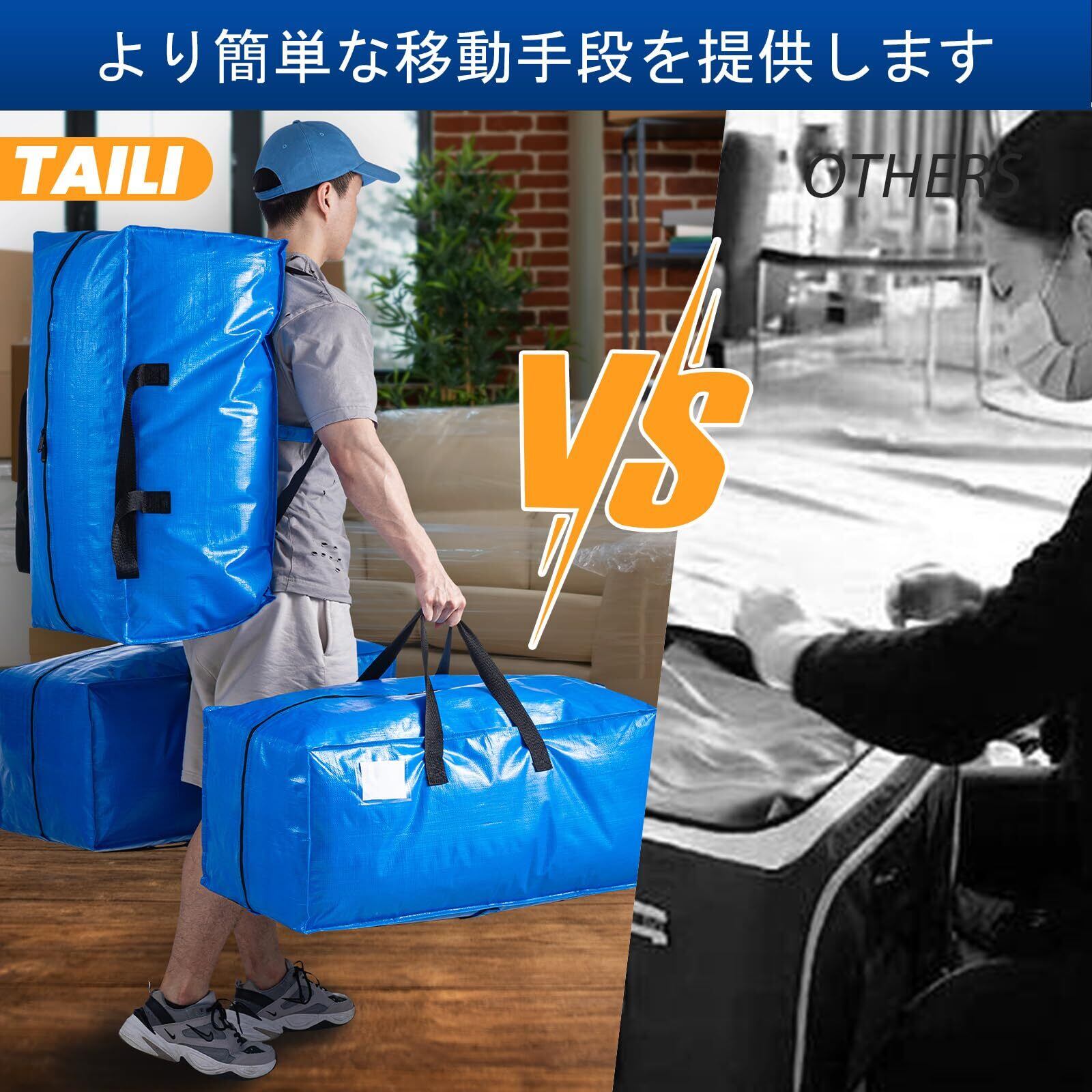 TAILI 大型収納袋 引越しバッグ 布団収納カバン 特大容量 ビッグバッグ 寝具ケース 持ち手付き 洋服 衣装ケース 羽毛ふとん 防塵防水 折りたたみ式 省スペース 引っ越し 背負える キャンプ 旅行 耐荷重 ブルー 4個セット