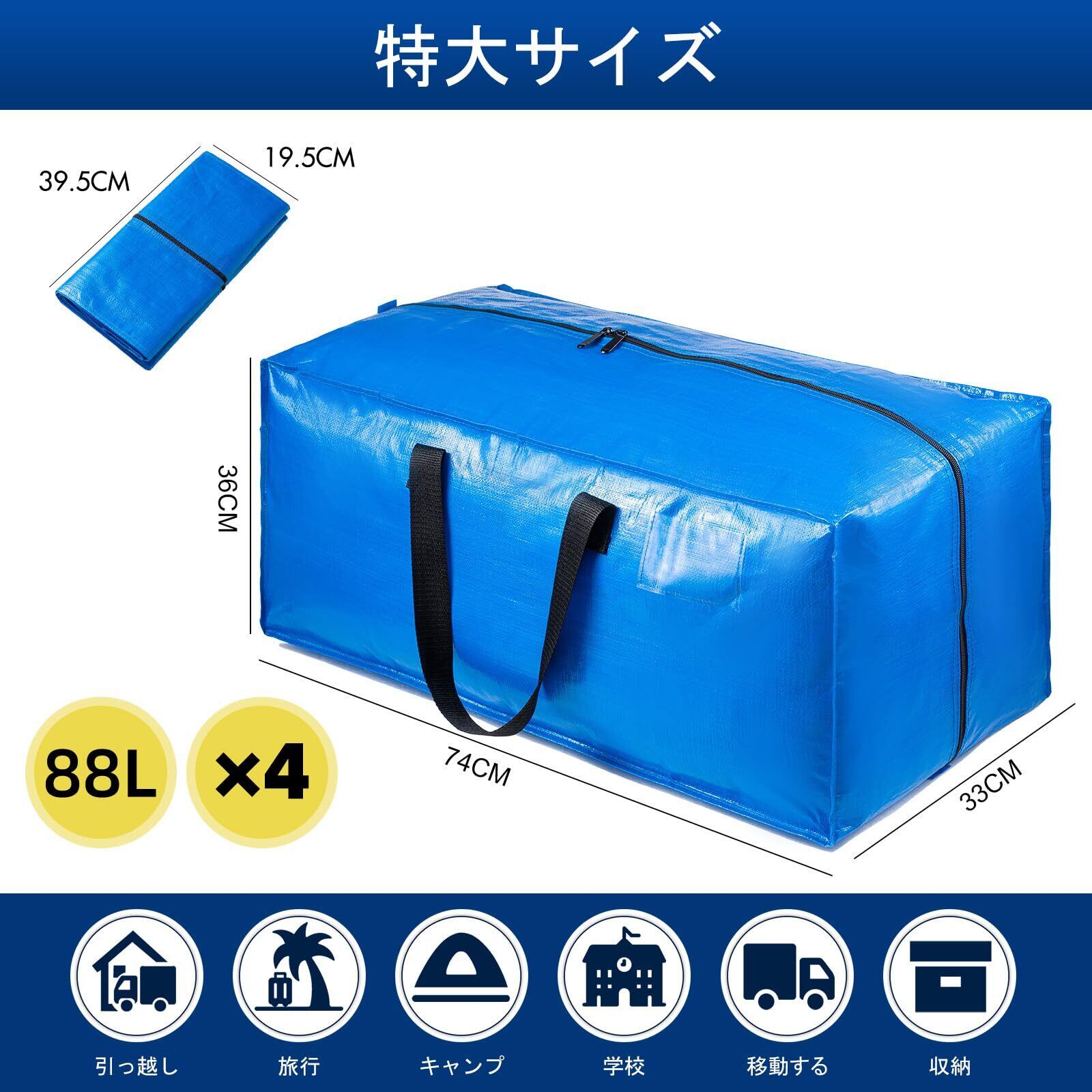 88L大容量、収納力抜群:抜群な特大引越しバッグの寸法:74cm * 36cm * 33cm、4パック。 両端のジッパーと中央に大きな開口部があるため、衣類、おもちゃ、靴、タオル、必需品、枕、寝具、シーツ、毛布、洗濯物、クリスマス飾りなどを簡単に収納できます