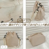 【巾着デザインで出し入れ簡単】 口元は巾着タイプで大きく開閉でき、荷物の出し入れがスムーズ。中身が見えにくく、防犯性もアップ。見た目も柔らかなシルエットで、コーディネートのポイントになります。