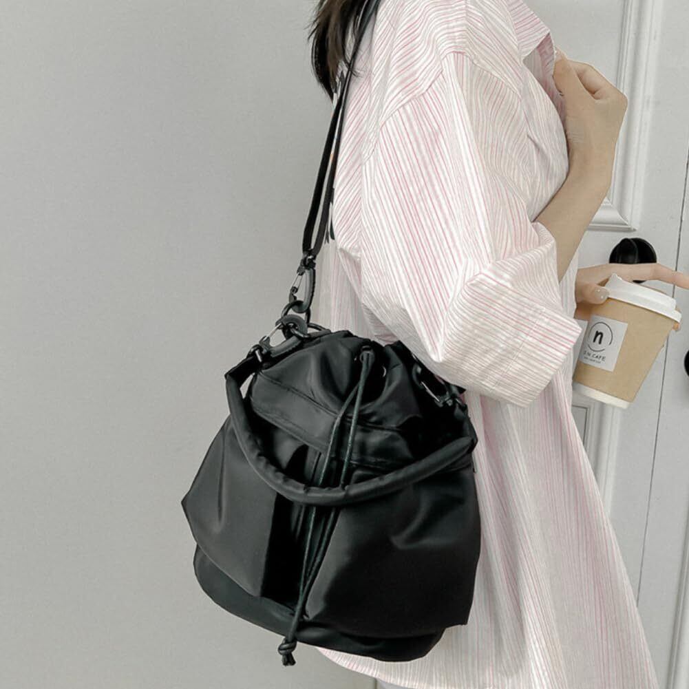 巾着バッグ 2way レディース ナイロン 超軽量 手提げ 肩掛け ドローストリング ショルダー バケットバッグ