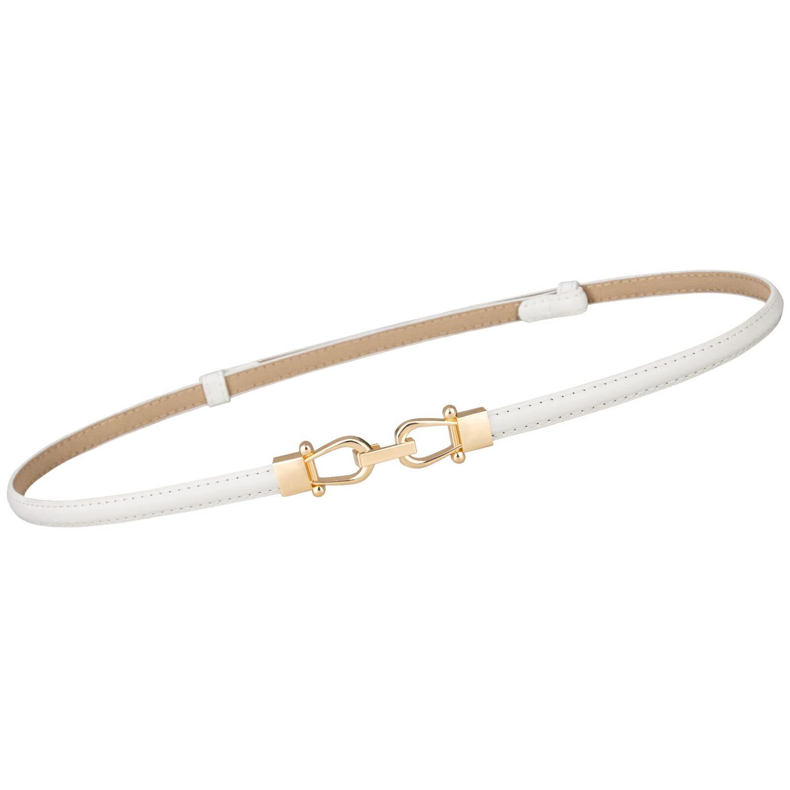 【デザイン】:細いレディースベルトなので、女性らしさを仕上げます。広げる時、金具部分を引っ張ります。締める時、左右の輪っかを動くかします。ゴールドカラーのの光沢のある高級感溢れるバックルを採用しています。価格もお手頃なので、女性らしい柔らかな印象に仕上げます。細身のデザインはがシンプルでかわいいです。飽きがこないから長く愛用できます。