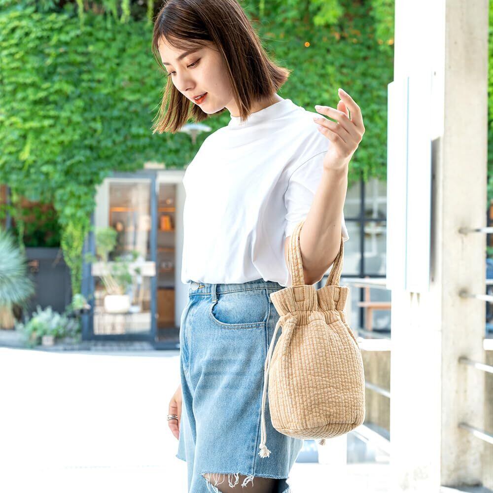 コロンとした丸みのあるシルエット。 人気の巾着型で可愛く大人女子に嬉しいデザイン。