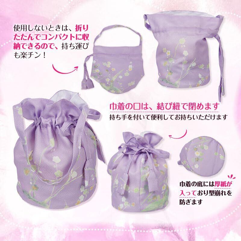 OTAKUMARKET 巾着袋 浴衣 バッグ 巾着ポーチ 小 袴 巾着 巾着バッグ 着物 和装 レディース 和柄 浴衣バッグ 七五三 卒業式 成人式 和風 小物 9カラー (E パープル)