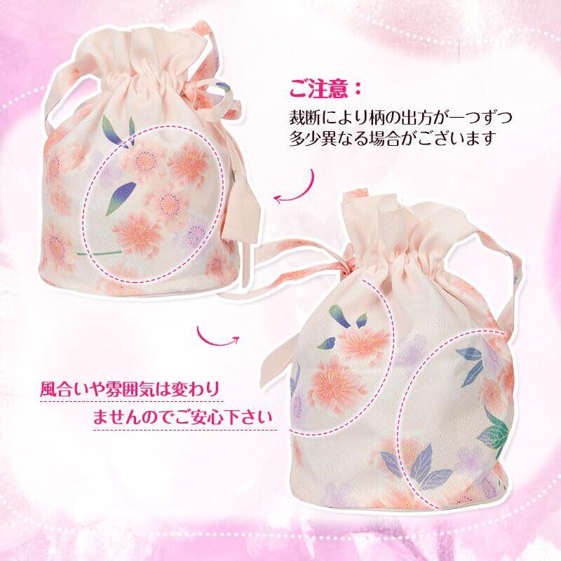 【巾着ポーチ デザイン】結婚式や入学式、卒業式、七五三、浴衣 バッグなど古典的な柄の華やかな装いに合わせてのご使用もおすすめです。使用しないときは、折りたたんでコンパクトに収納できるので、持ち運びも楽チン!誕生日などのプレゼントにも喜ばれること間違いなし!