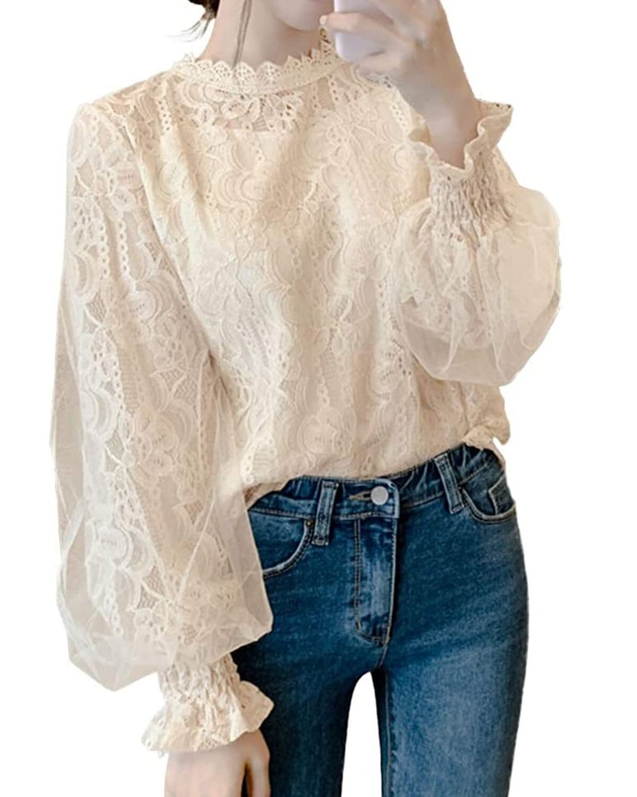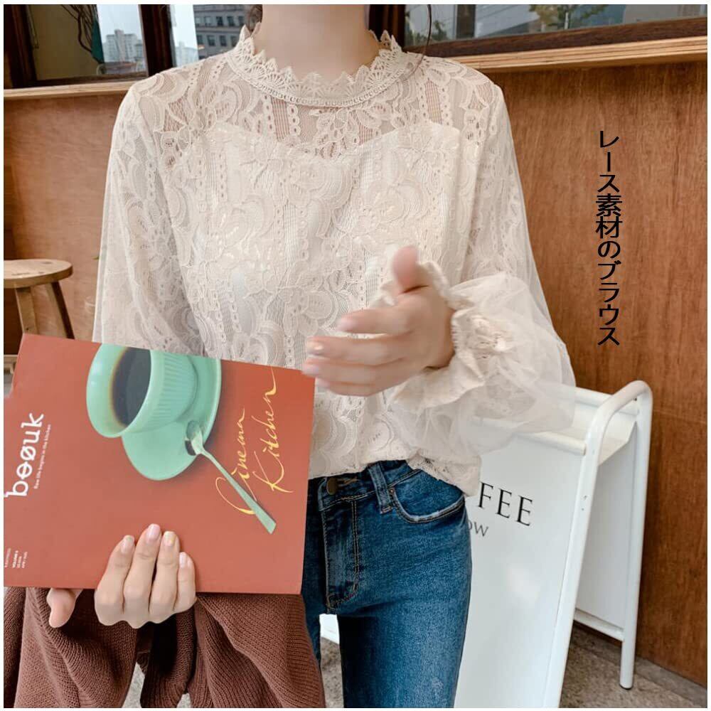 [Eolluka] レース シャツ ブラウス レディース チュール トップス 着痩せ 長袖 フォーマル オフィス 通気 春 夏 秋