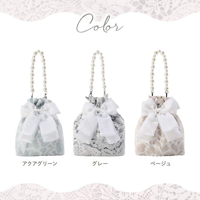 レース 巾着 パールチェーン 付き 大容量