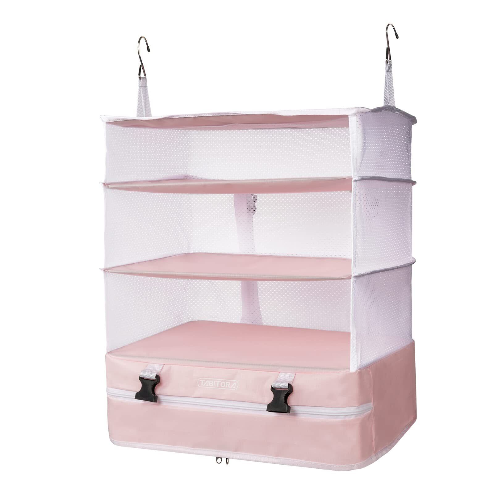 TABITORA(タビトラ)収納ボックス 吊り下げ インナーバッグ 衣類ラック 収納 旅行 出張 クローゼット 省スペース 大容量 衣装ケース 4段 オーガナイザー ピンク XL