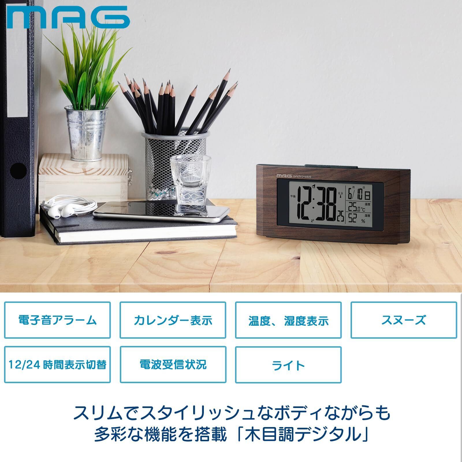 MAG(マグ) 目覚まし時計 置き時計 デジタル 電波時計 温度計 湿度計 温湿度計 カレンダー 電子音 アラーム スヌーズ ライト 木目調 ブラウン ウッドラインT-743 BR-Z ノア精密