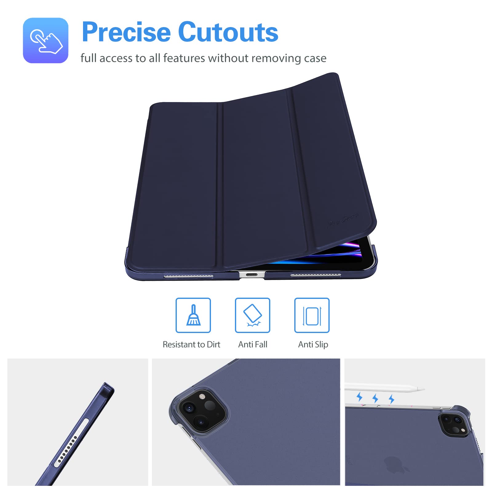 ProCase iPad Pro 11 ケース 第4/3/2/1世代に適用(2022 2021 2020 2018)、[Apple Pencilのペアリングと充電に対応] 三つ折り スタンド スマートカバー - ネイビー