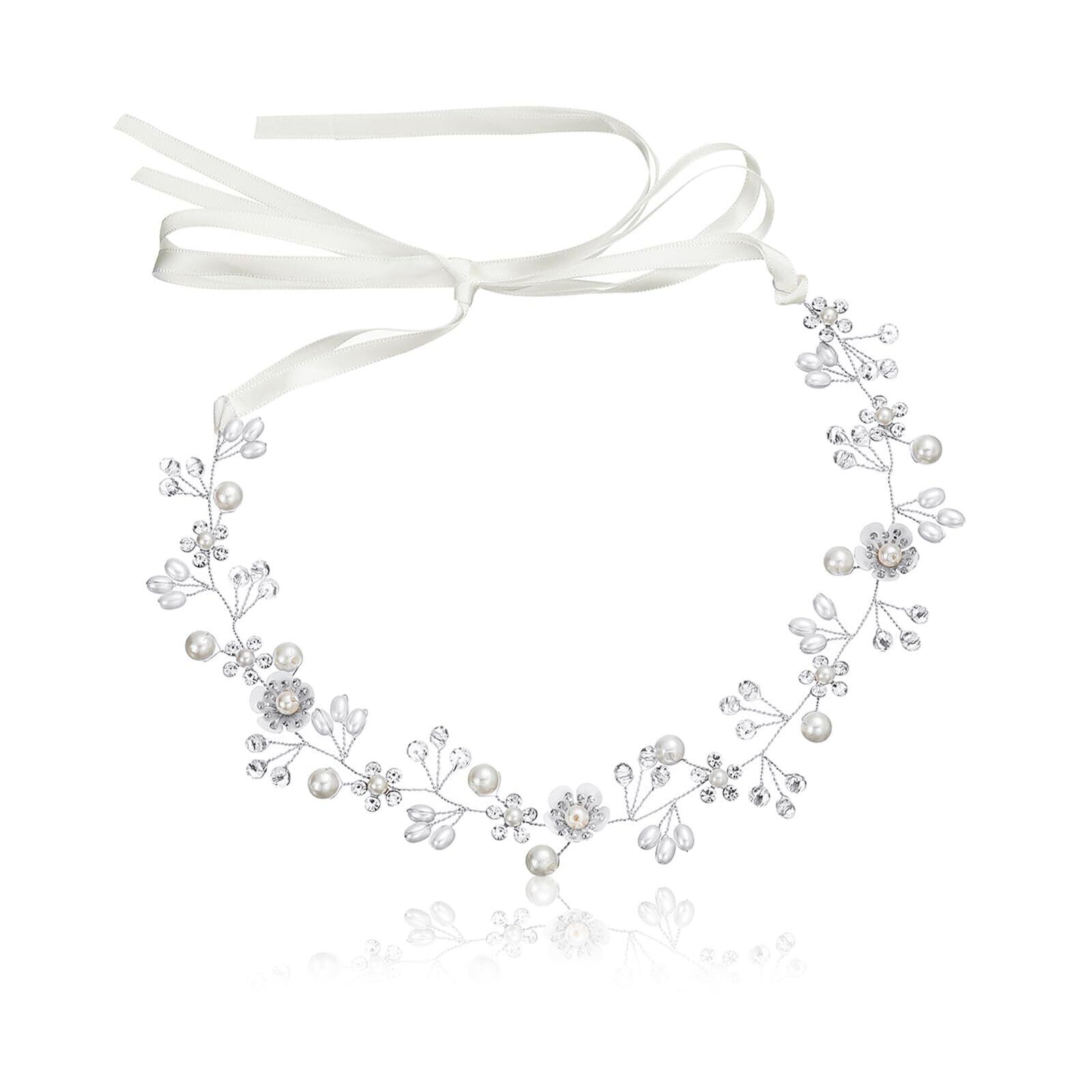 【新春セール】サムコス 髪飾り 花 パール 花かんむり リボン ホワイト ヘッドドレス クリスタルビーズ 花冠 ヘアアクセサリー 結婚式 発表会 披露宴 卒業式 パーティー ダンス 和装 撮影 写真 子供 大人用 (Aシルバー) | libertyislan