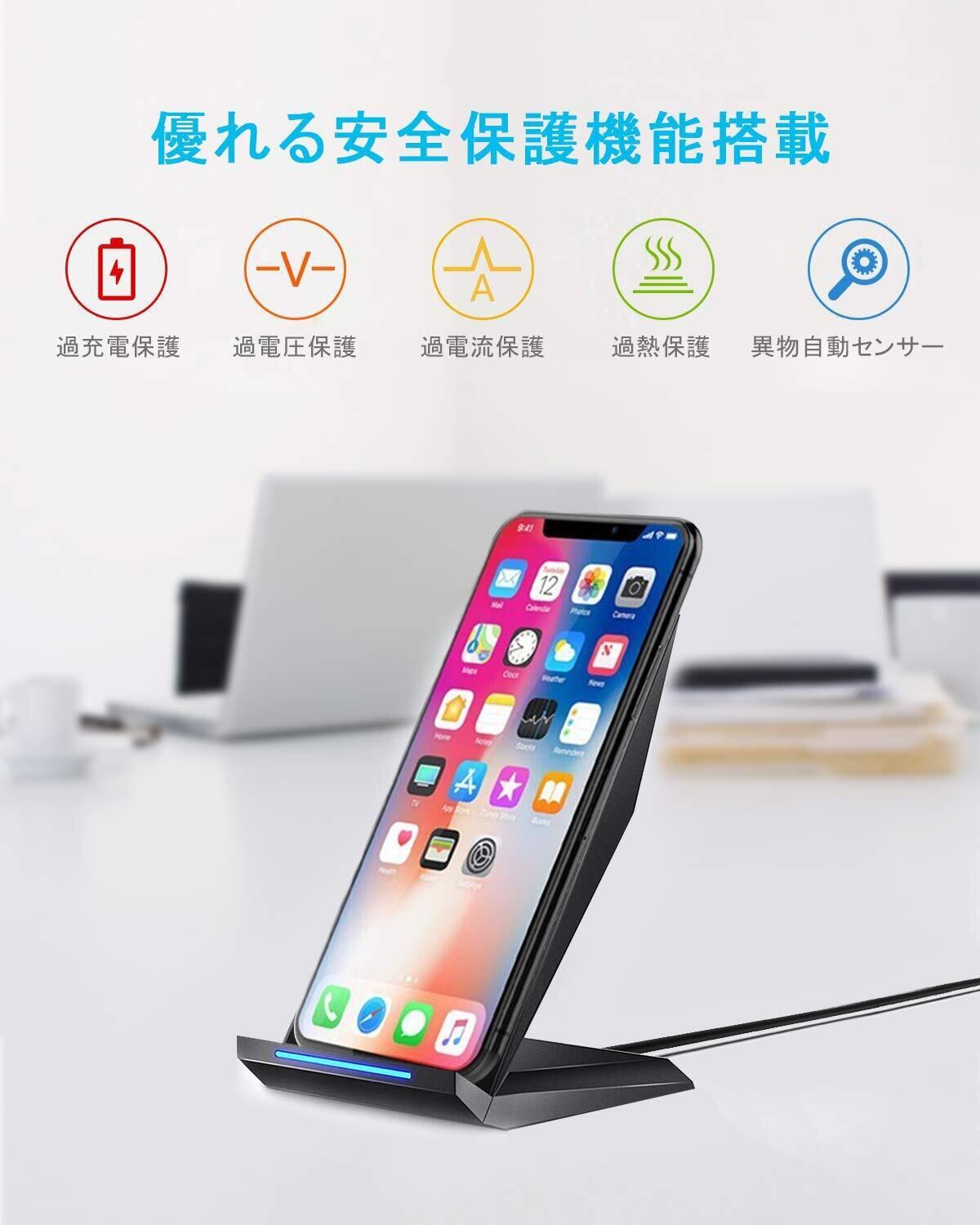 NANAMI ワイヤレス充電器 Qi認証 iPhone 16/15/14/13/12/11/SE/8シリーズ Galaxy S25/S24/S23/S22/21(Ultra) 他のqi機種対応 USB Type-C端子 Quick Charge 3.0 最大15W出力 急速 置くだけ充電 スマホスタンド ワイヤレスチャージャー 日本語取扱説明書付属 テレワーク 新生活 お中元 夏のギフト ブラック