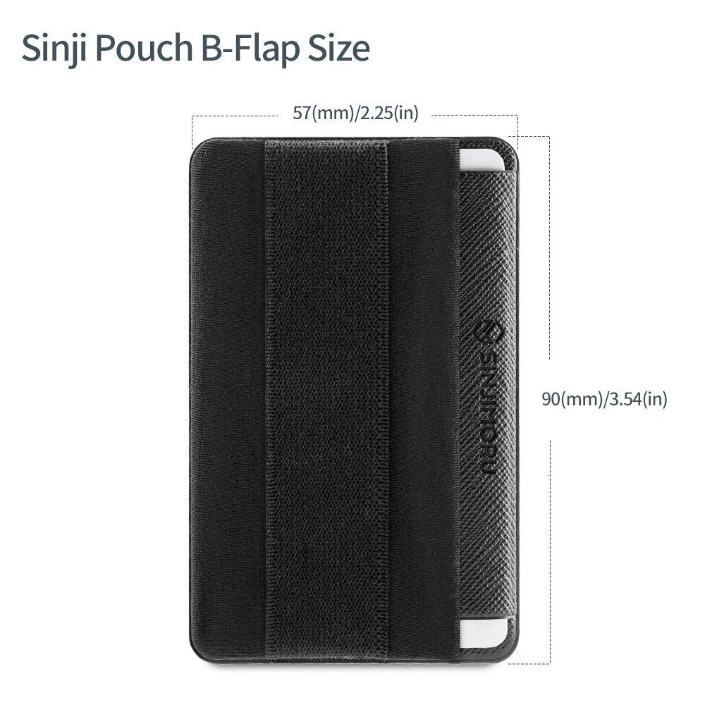 Sinjimoru スマホストラップ 背面 カード収納 ポケット、 片手操作便利 スマホ 落下防止バンド iPhone 15、14、13、12 シリーズ androidなど 全機種対応 携帯電話貼り付けのハンドストラップ付 クレジットカードホルダーケース。Sinji Pouch B-flap ブラック