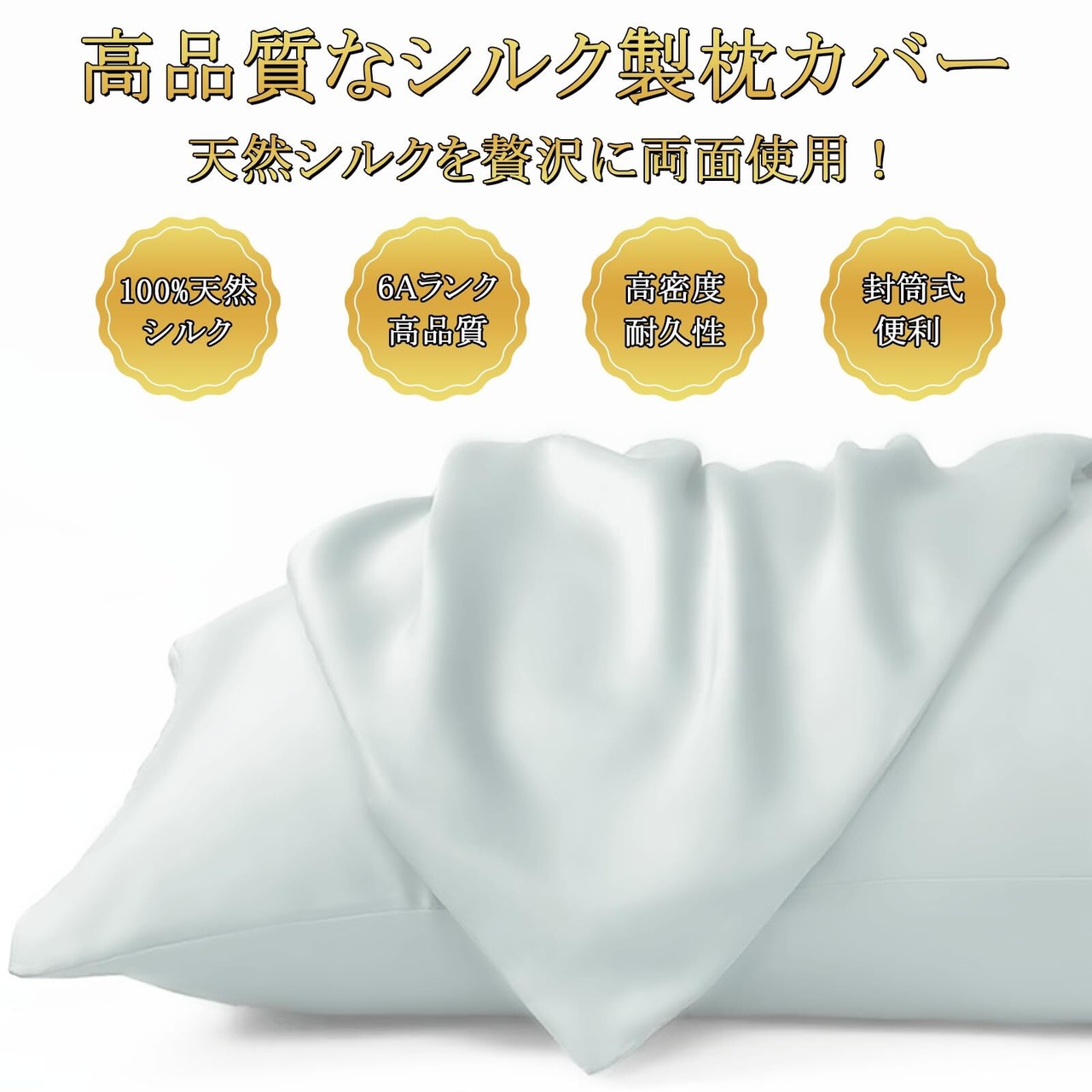【美容枕カバー】シルク製の枕カバーは、就寝時の乾燥や髪の摩擦によるダメージを最小限に抑え、翌朝にはまとまりのあるサラサラ髪に!優れた保水性や抗酸化作用により「肌の万能薬」とも言われたシルクは髪や肌のケアにピッタリ!