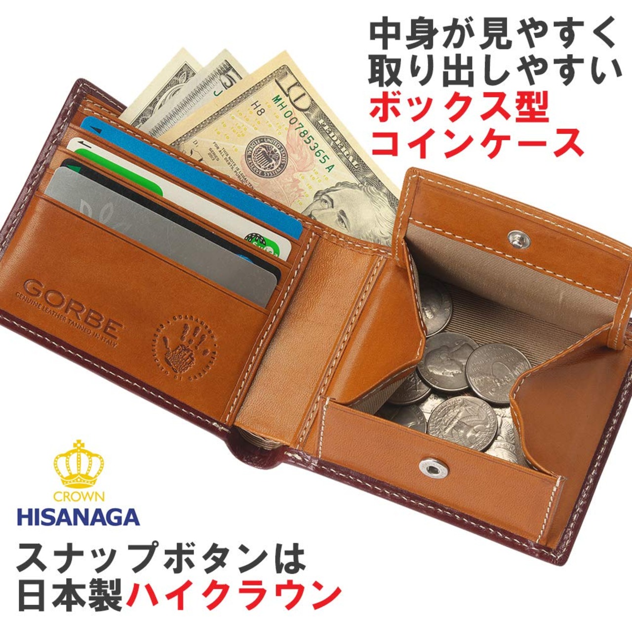 [ゴルベ] 財布 メンズ イタリアンレザー 二つ折り 名入れ (バーガンディ)