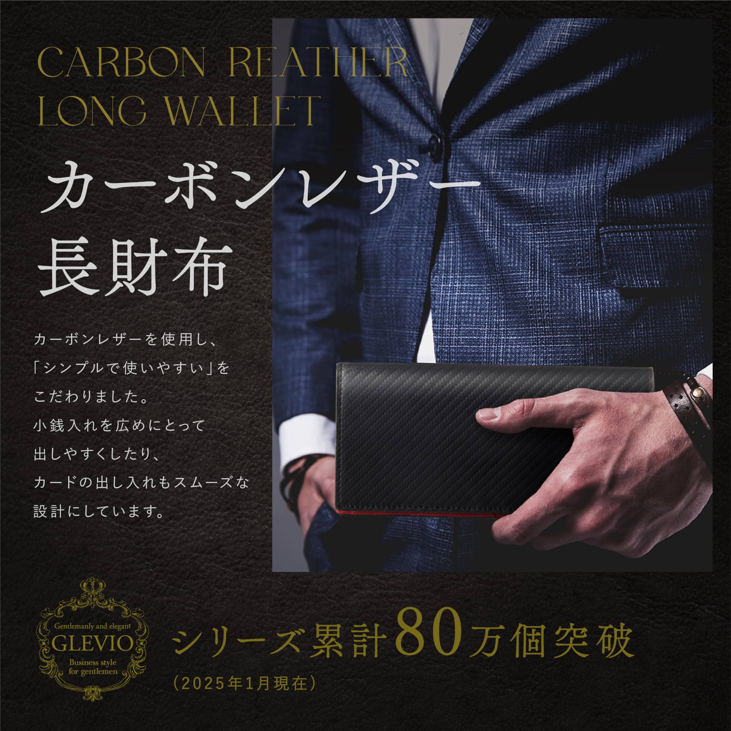 【美しく、丈夫でしなやかなカーボンレザー メンズ長財布】品位ある光沢感と落ち着いた色合いの中に、ワンランク上の格好良さを感じさせる”カーボン”。耐久性にも優れ、しなやかさもあるため、丈夫で使いやすいと定評がある。まさしくワンランク上のメンズにふさわしい財布と言える。