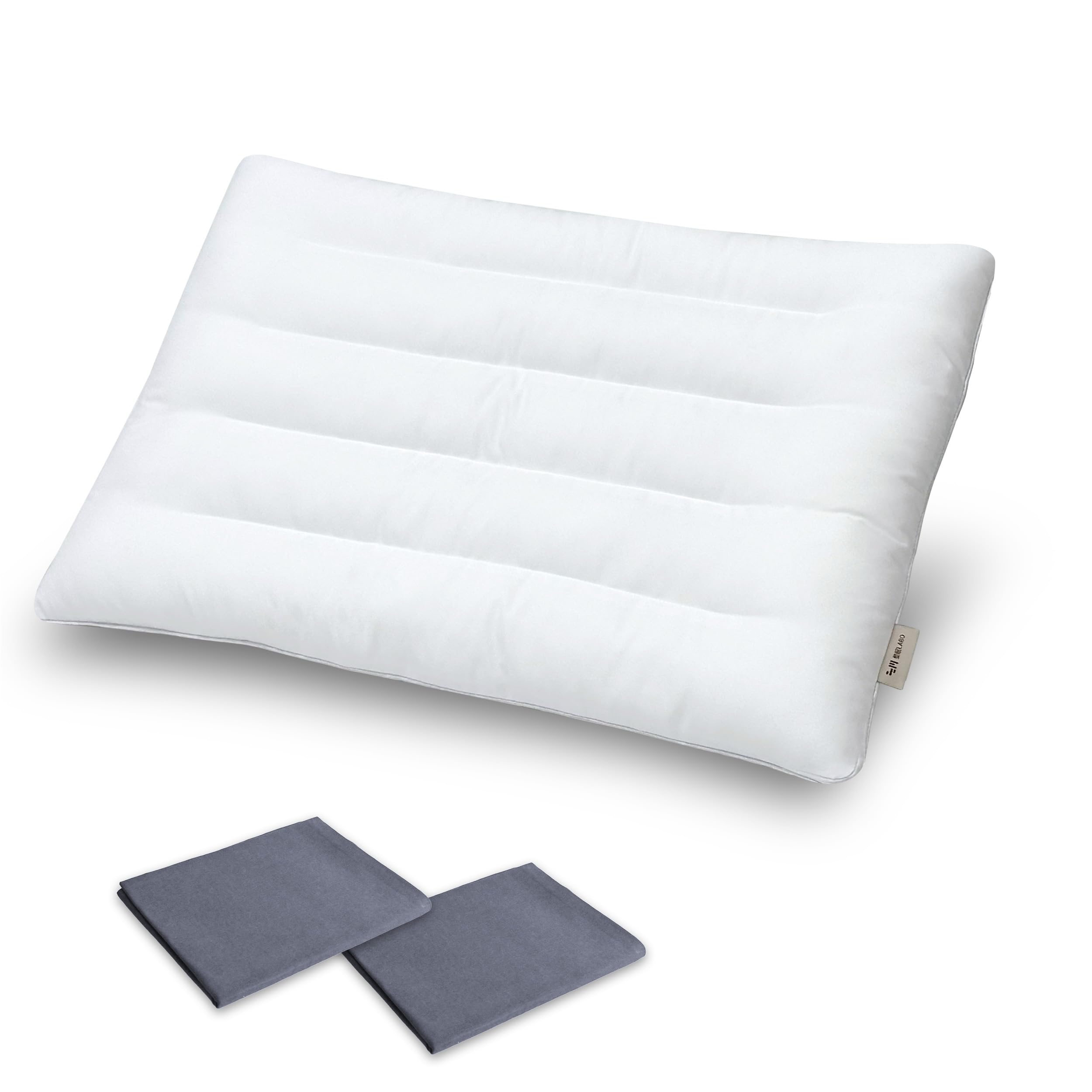 【日本製】 低め枕 3cm 薄型まくら 高さ調節可 丸洗いOK 通気性 首・肩ラク 快眠サポート 仰向け・うつ伏せ寝対応 低反発 国産枕 60×40cm ホワイト(グレーカバー2枚付き)