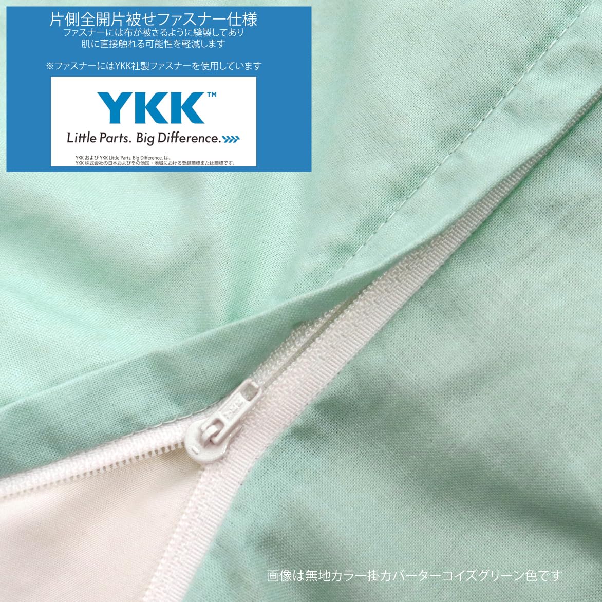 【仕様】高品質のYKK社製ファスナーを使用。片側が全開になるため布団の出し入れに便利です。カバー内側8箇所には着脱簡単でふとんとのずれを防ぐYKK社製テープ付きスナップ「SOFIX」付き。(「SOFIX(R)」はYKK株式会社の登録商標です)