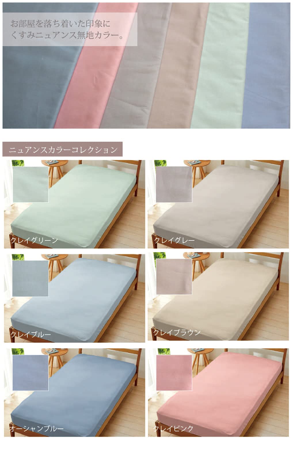肌触りの良い日本製の綿100%の生地を使用したベッドウェアです。 シーツはゴム式ですのでお一人で簡単に掛けやすく、どんなお布団やお部屋にも合うお色味をご用意!