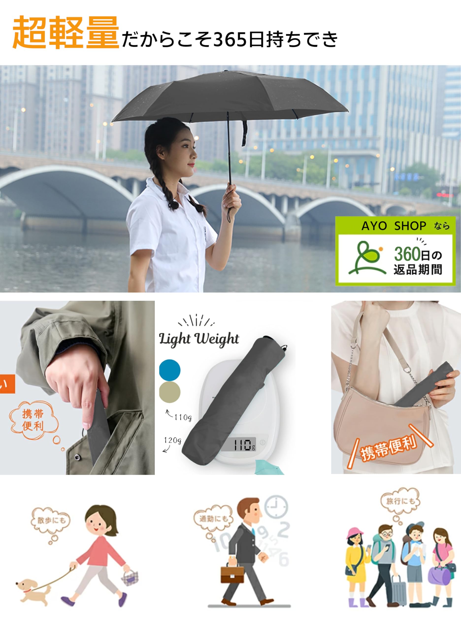 【プレゼントにも最適!】優しい快適性・優れた耐久性を追求し続きます。誕生日、記念日、母の日、父の日、敬老の日、お祝い、入学、卒業、バレンタイン、ホワイトデーなどのプレゼントにもおすすめです。AYOの超軽量折りたたみ傘は、軽さ・強さ・デザイン性を兼ね備えた、日常使いにもプレゼントにもぴったりのアイテムです。ぜひこの機会にお試しください!