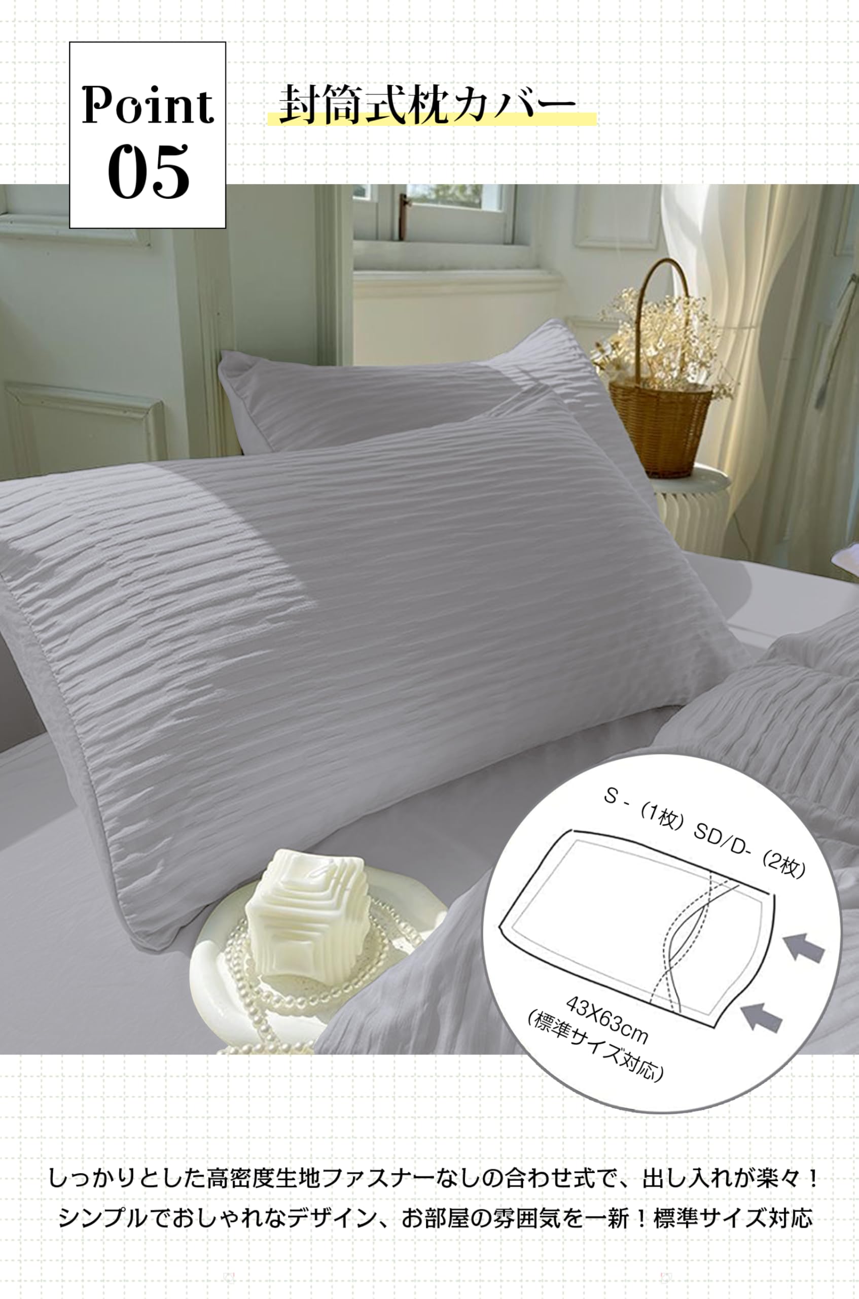 【シンプルなデザイン】シアサッカー生地&クシュクシュ加工が可愛い!表面の凹凸によって、生地が肌に触れる面積が少なくて、肌と生地の間に空間ができるため通気性がよく快適に過ごせます。しわになりにくく、色落ちしにくく、毛玉ができにくく、快適な睡眠を誘います。どんな季節でも気軽に洗えるから、清潔にお使い頂けます。お部屋の雰囲気がぴったり合わせます。布団カバーの側面の全開ファスナーのデザイン、使い勝手が良いです。装着やすい、取り換えも簡単です。「掛布団カバー」が揃うお得な寝具カバーで、洋式・和式兼用でマットレスでも敷布団でもご使用いただけます。