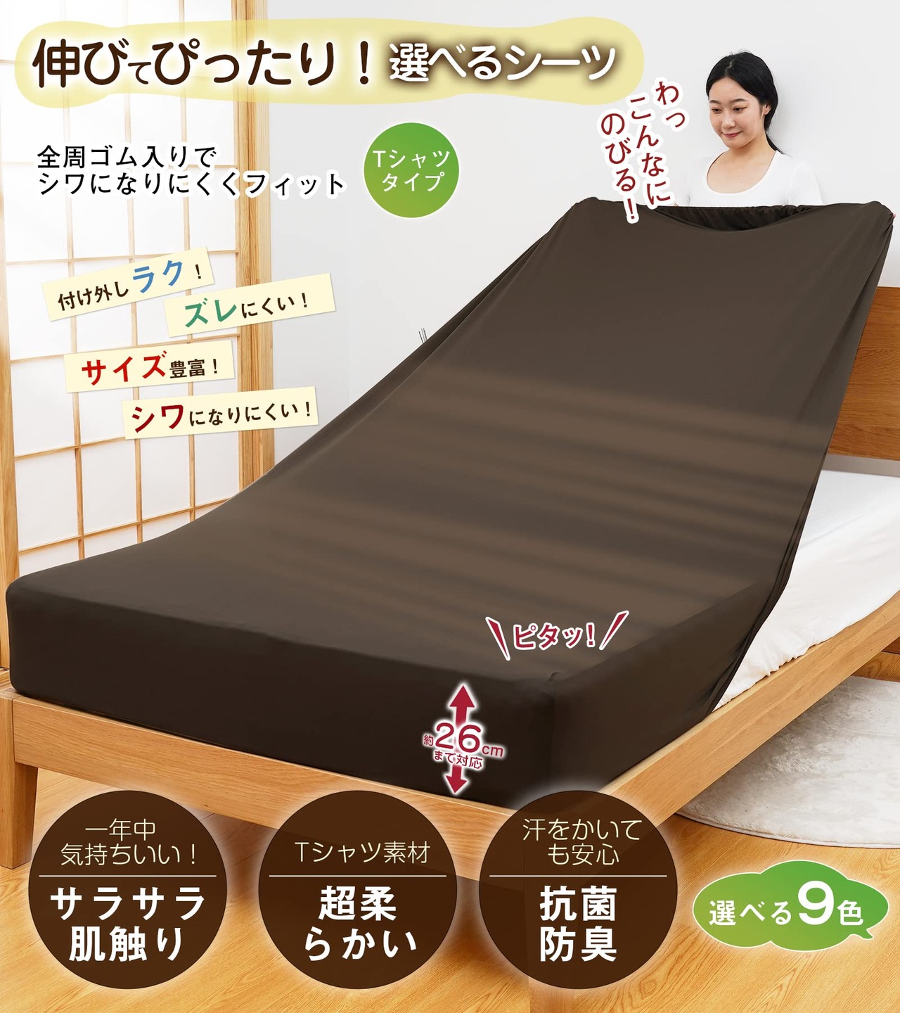 【3Dストレッチ・超柔らか】 ボックスシーツ シングル~スモールシングル兼用 シーツ シングル ベッドシーツ シングル マットレスカバー シングル のびのびシーツ フィットシーツ ベッドシーツ マットレス・敷ふとん兼用 ベッドカバー オールシーズン 超吸水速乾 抗菌防臭 通気性 ブラウン
