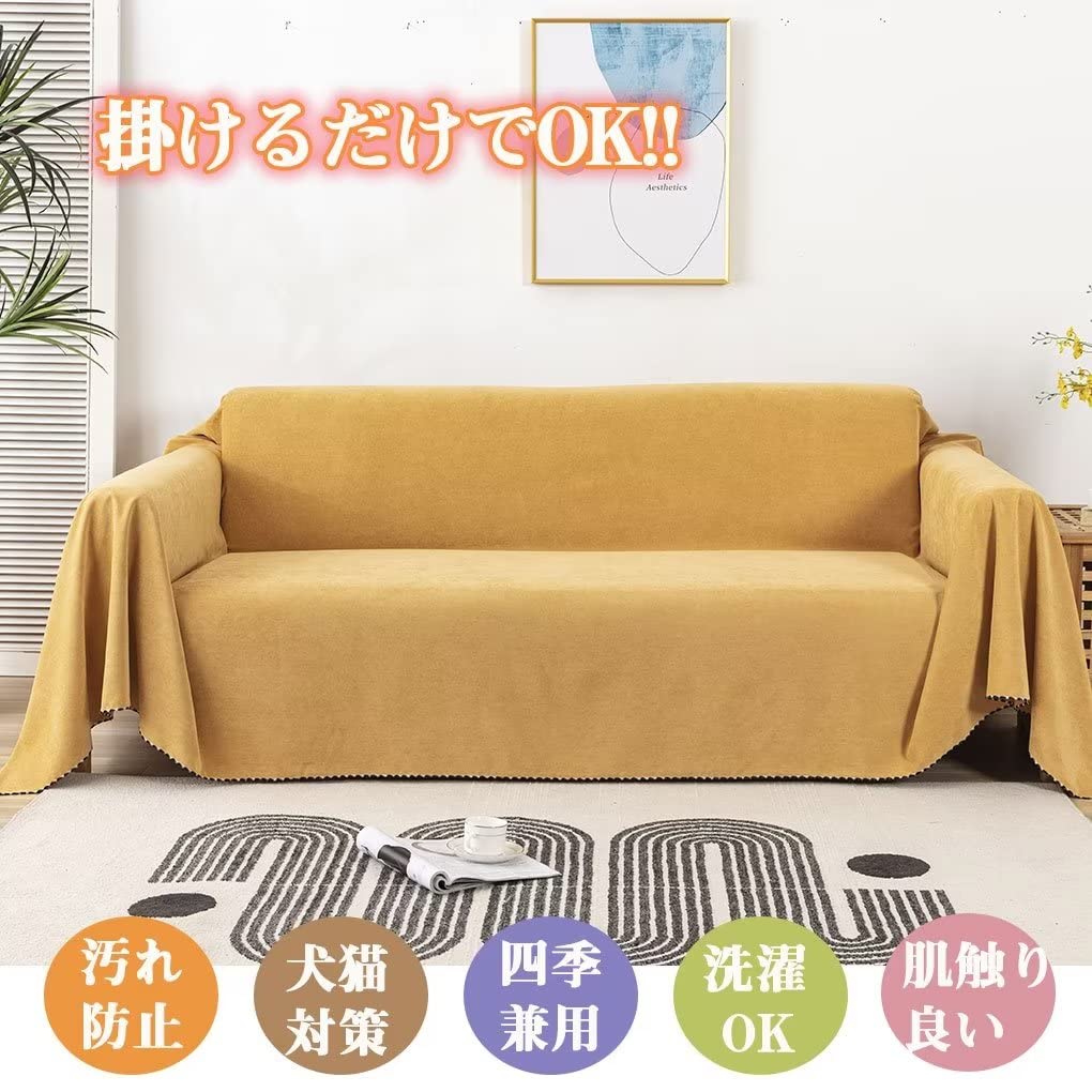 【在庫処分】ソファーカバー 防水 かけるだけ マルチカバー 長方形 大判 ペット対応 犬猫対策 ソファーベッドカバー ソファーカバー 1人 2人 3人 4人掛け 肘付き 肘なし 防水ソファーカバー 滑り止め 北欧 おしゃれ 無地 防水ソファーシーツ 毛髪不粘着 犬猫用シート 傷防止 爪とぎ防止 ソファー保護カバー 防塵 汚れ防止 洗える 四季通用 イエロー 130*180CM ANJYUU | libertyislan