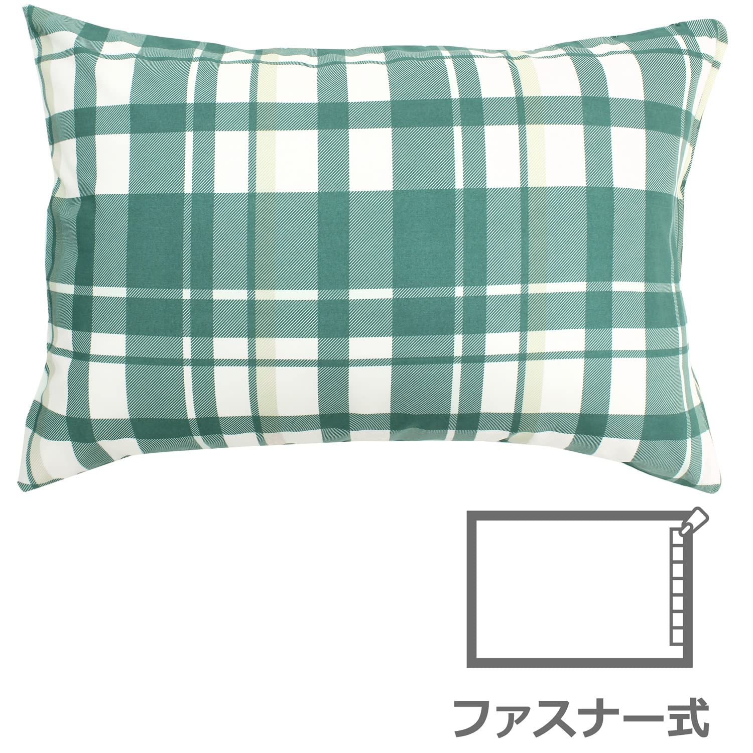 メリーナイト 枕カバー 「マドラスチェック」 グリーン 約43×63cm ファスナー式 まくらが入れやすい 洗える 速乾 シワになりにくい FF16111-53