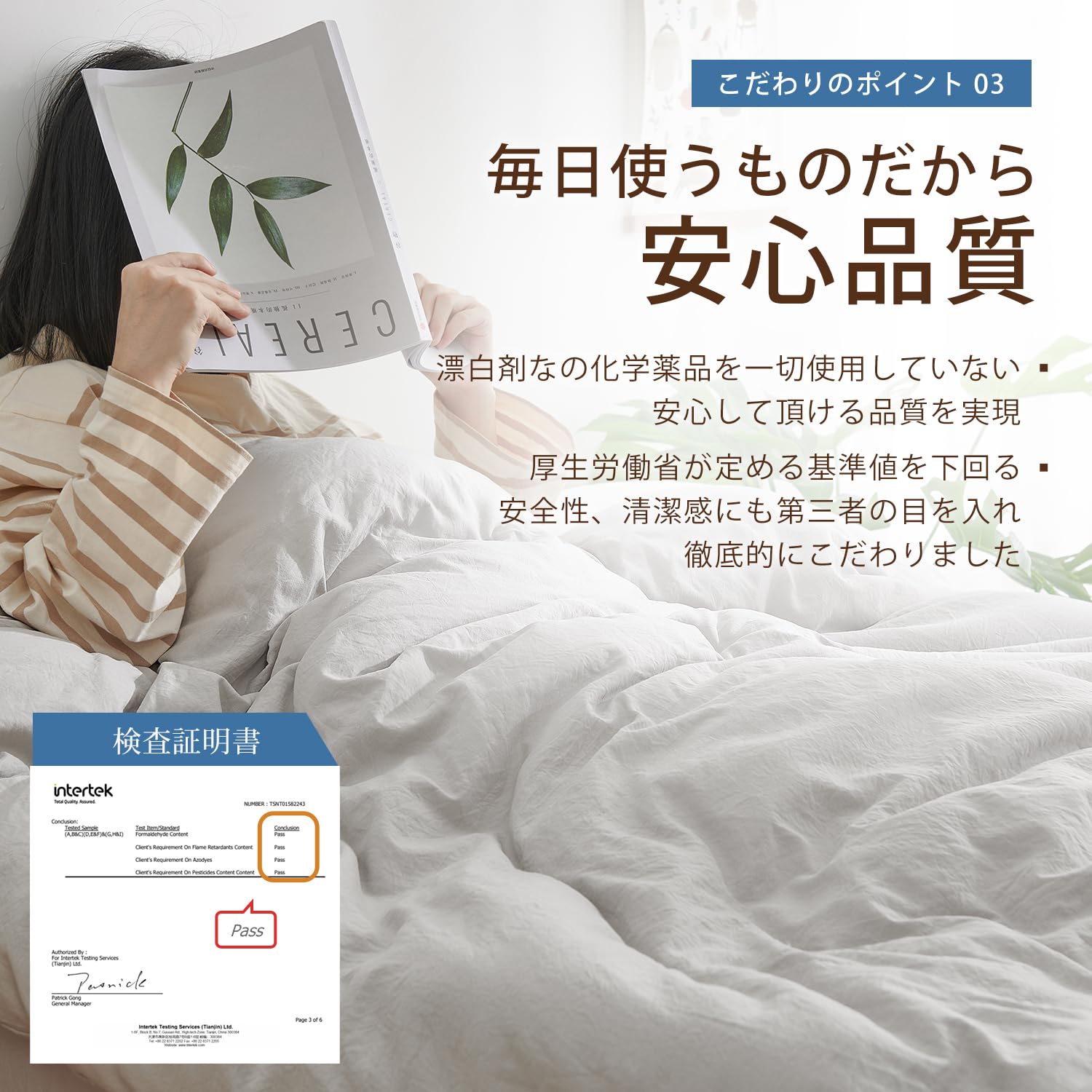 <洗濯機で丸洗いOK>:軽量で持ち運び易く、家庭用洗濯機での丸洗いが可能。速乾性に優れ、洗濯ネット使用でわたズレなし。常に清潔で、メンテナンスも簡単です。