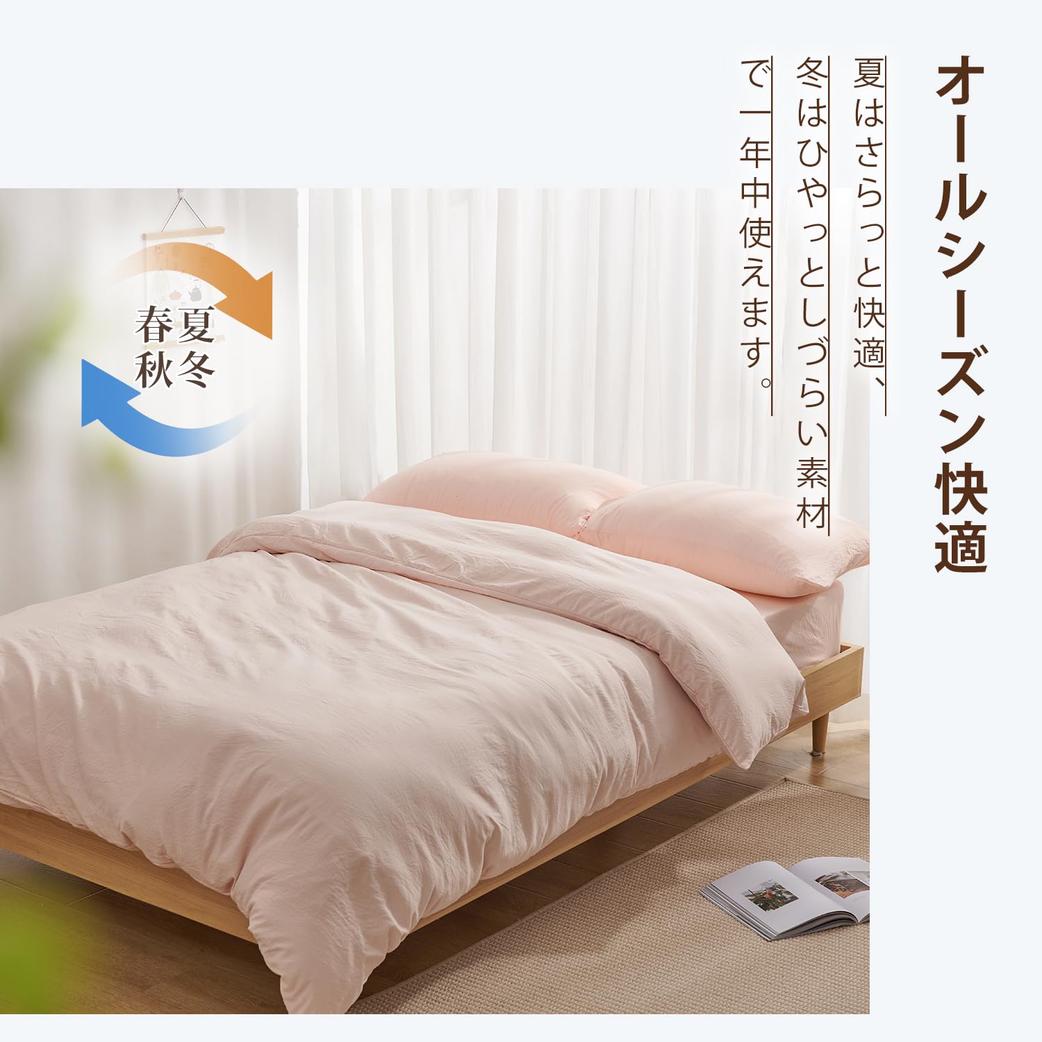 クモリ(Kumori) 掛け布団カバー シングル 洗いざらし 単品売り シワ加工 ピーチスキン しっとり 水洗い 柔らかい 肌に優しい 吸水速乾 丸洗いOK 洗える 無地 シンプル オールシーズン布団カバー 掛ふとんカバー 寝具カバー(150X210cm ピンク)