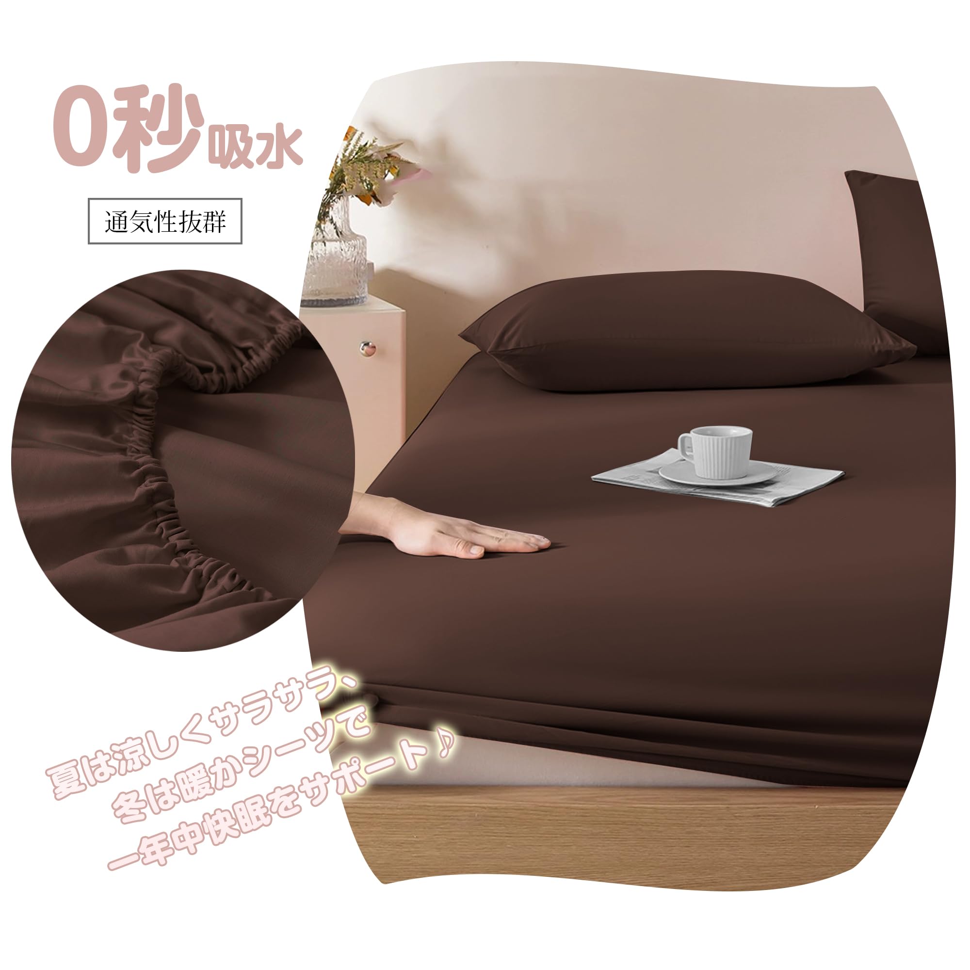 【新着商品】ボックスシーツ シングル AYO 吸水速乾シーツ ベッドスプレッド マットレスカバー 抗菌防臭 毛玉ができにくい 厚さ5cm〜30cmのマットレスに対応 肌に優しい 高耐久性 洗える オールシーズン対応 (シングル 100×200cm ブラウン) | libertyislan