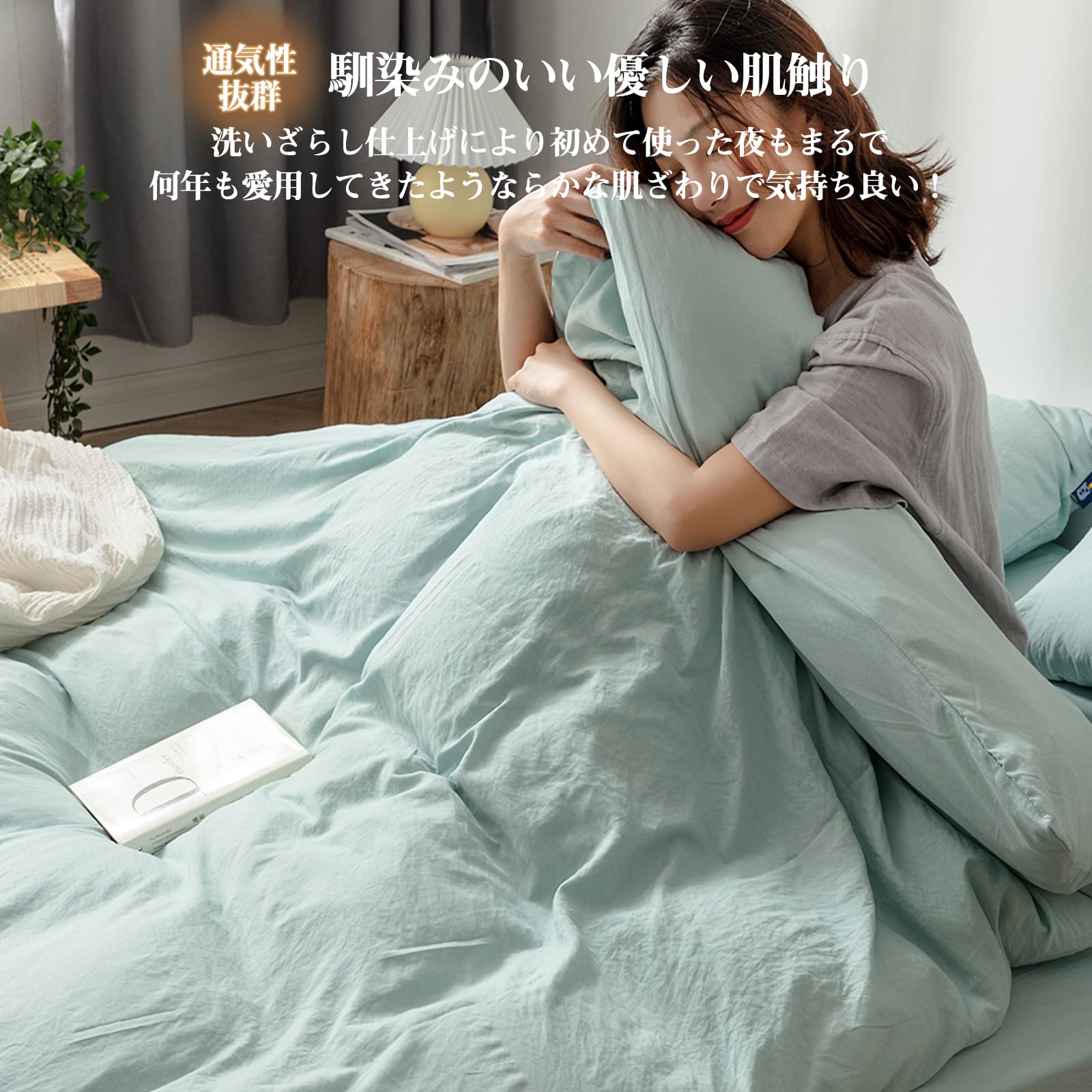 掛け布団カバー シングル 布団カバー 【洗いざらし & 超柔らかタイプ】 ダブルファスナー 抗菌防臭 吸水速乾 丸洗いOK オールシーズン 掛けカバー かけ布団カバー 掛ふとんカバー 肌に優しい (シングル グリーン)