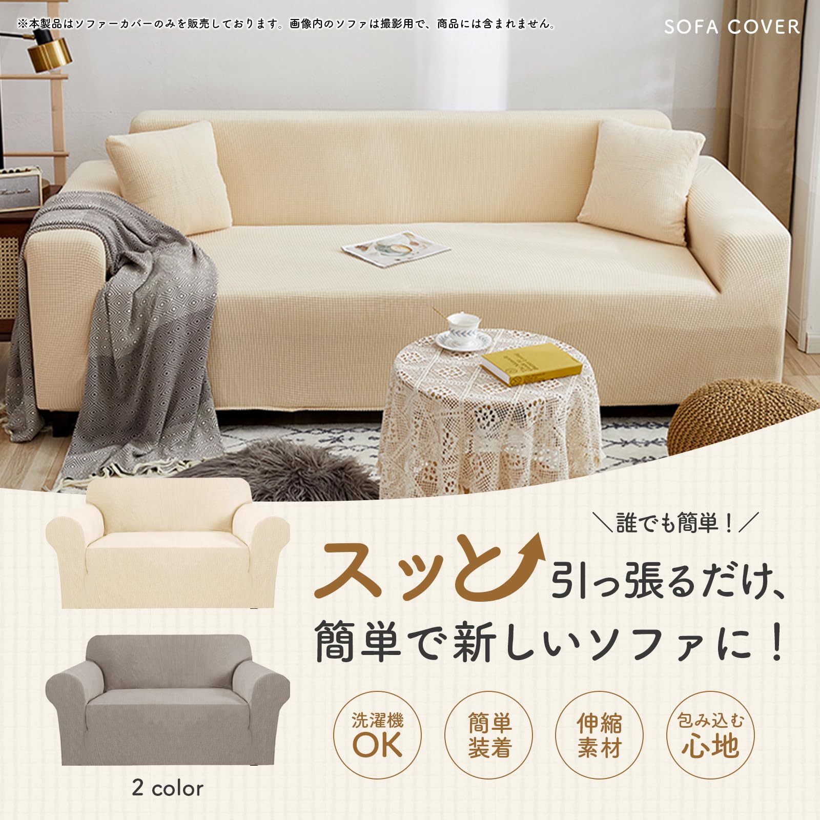 【だれでも簡単に装着可能】 ストレッチ性があるため、肘付きソファーやL字型ソファーなど、さまざまな形状に簡単対応。米色と浅灰色の落ち着いたカラーは、取り付けるだけでリビングや寝室をスタイリッシュに変えることができます。滑り止め機能も付いており、ずれにくく安心です。