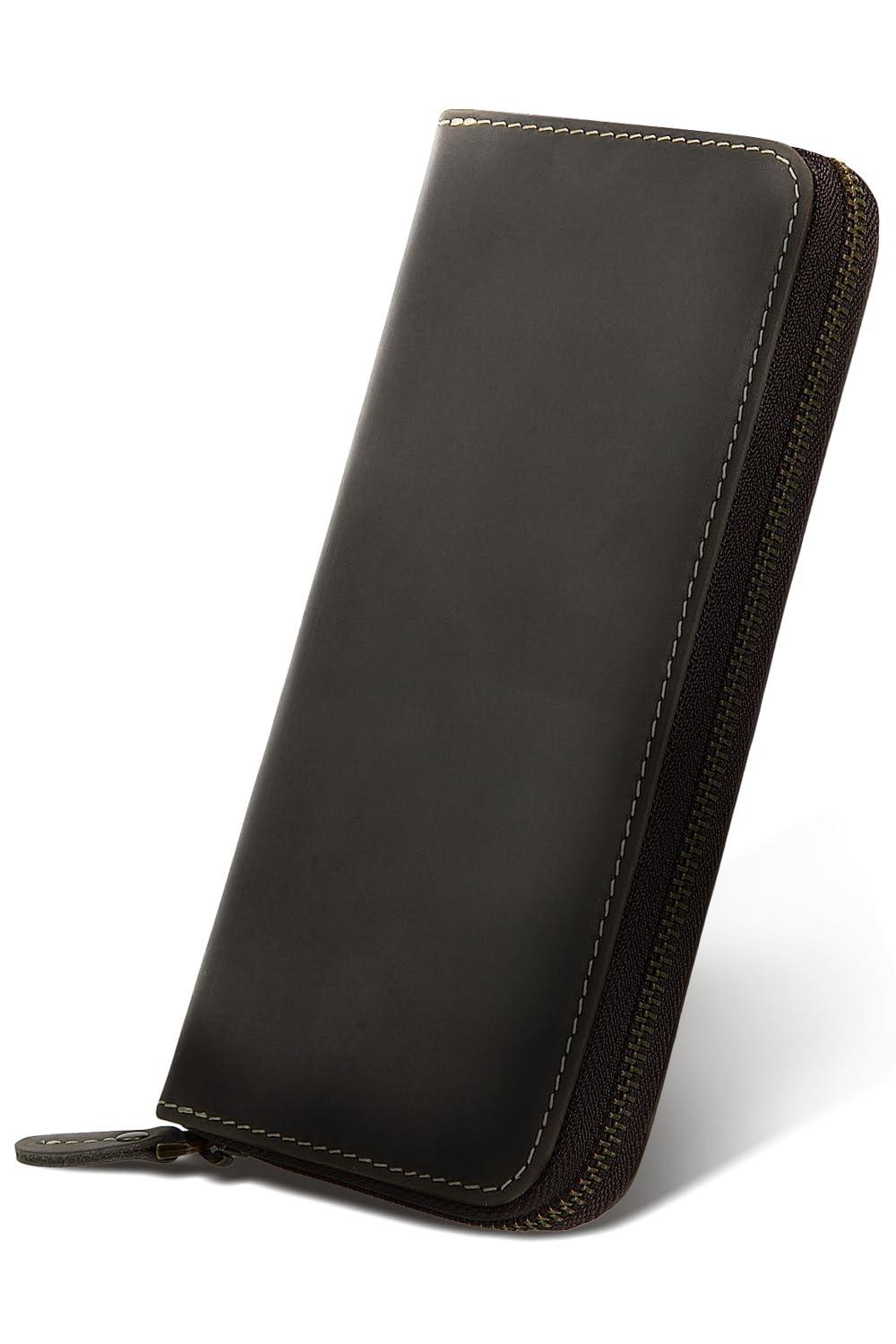 [亀登鞄製作所] 上質な本革使用 【 心地よい手触り 】【 YKKファスナー 】 財布 メンズ 長財布 本革 軽量 (牛革の最表面のみで作られたさいふ) 大容量 小銭入れ カード 牛革 おしゃれ (こげ茶)