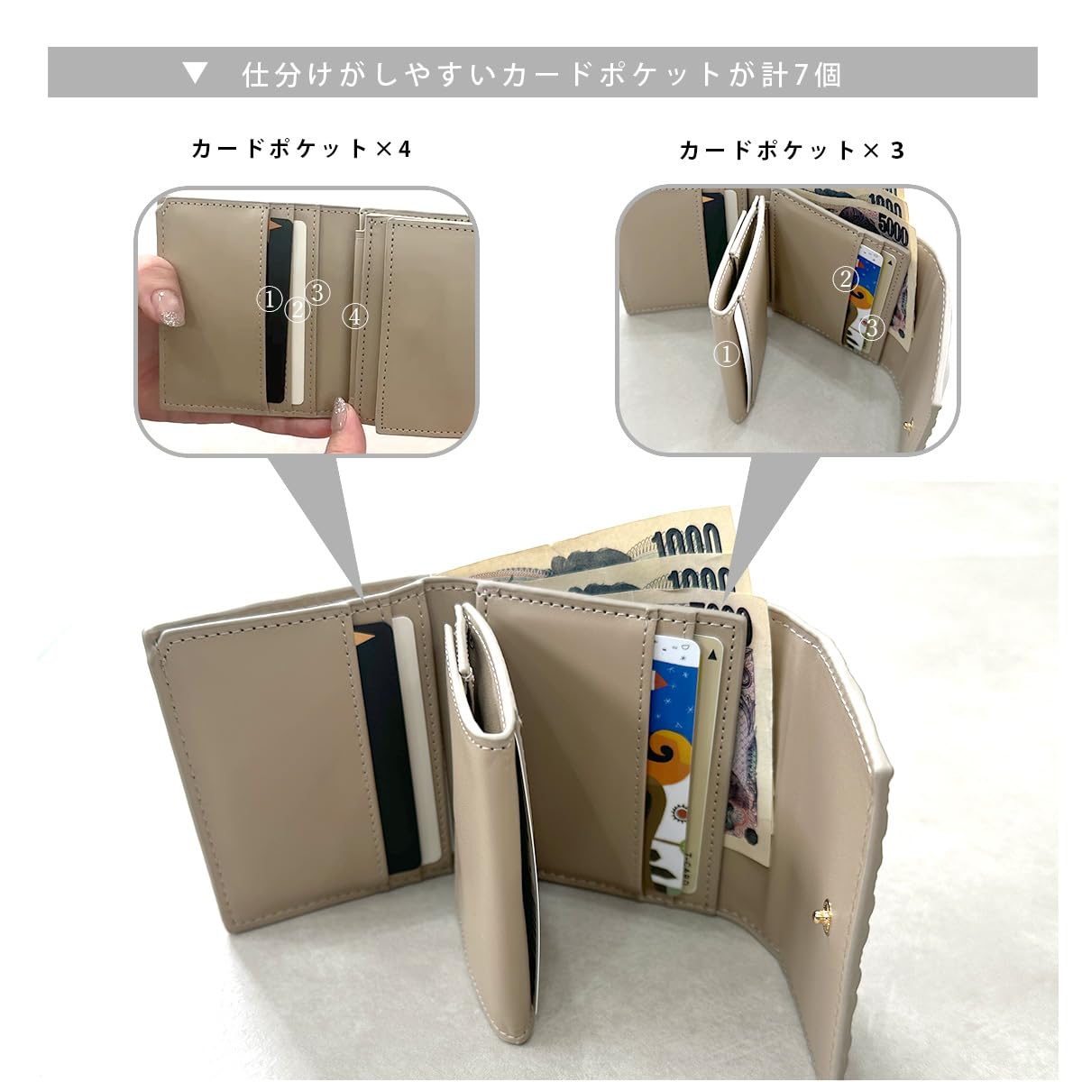 大容量収納: カード入れが7箇所、ボックス型の可動式コインケース付きで、たくさんのカードや小銭を収納できます。現金派も使いやすい多機能財布で、様々なシーンで活躍します。