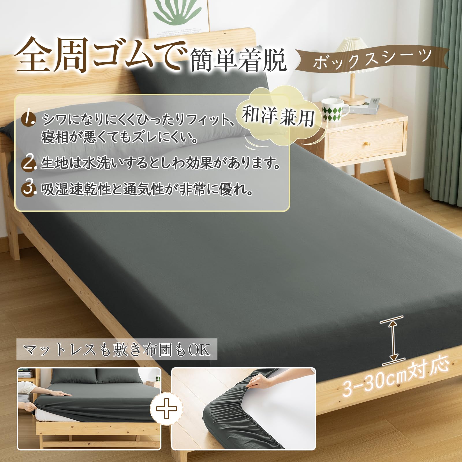 Housecover 布団カバー シングル 3点セット 寝具カバーセット【水洗い加工&超柔らかい】掛け布団カバー 洋式ベッド・和式布団兼用 ボックスシーツ 洗いざらしシワ加工 やわらか 肌触り 吸水速乾 丸洗い 無地 シンプル オールシーズン(掛け布団カバー シングル・3点セット ダックグレー)