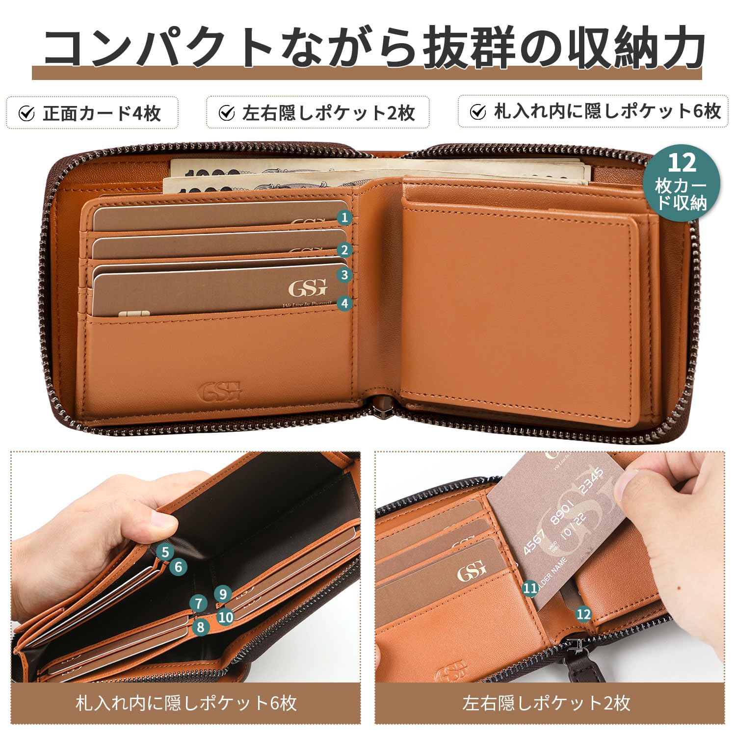 [ジー エス ジー] 財布 メンズ 2つ折り さいふ コンパクト ミニ財布 ブランド 男子 折り畳み 人気ランキング 小さい財布 カードたくさん ラウンドファスナー 使いやすい BOX型小銭入れ プレゼント用 ギフト 箱入り 折りたたみ 男性用 コーヒー+ブラウン 24022