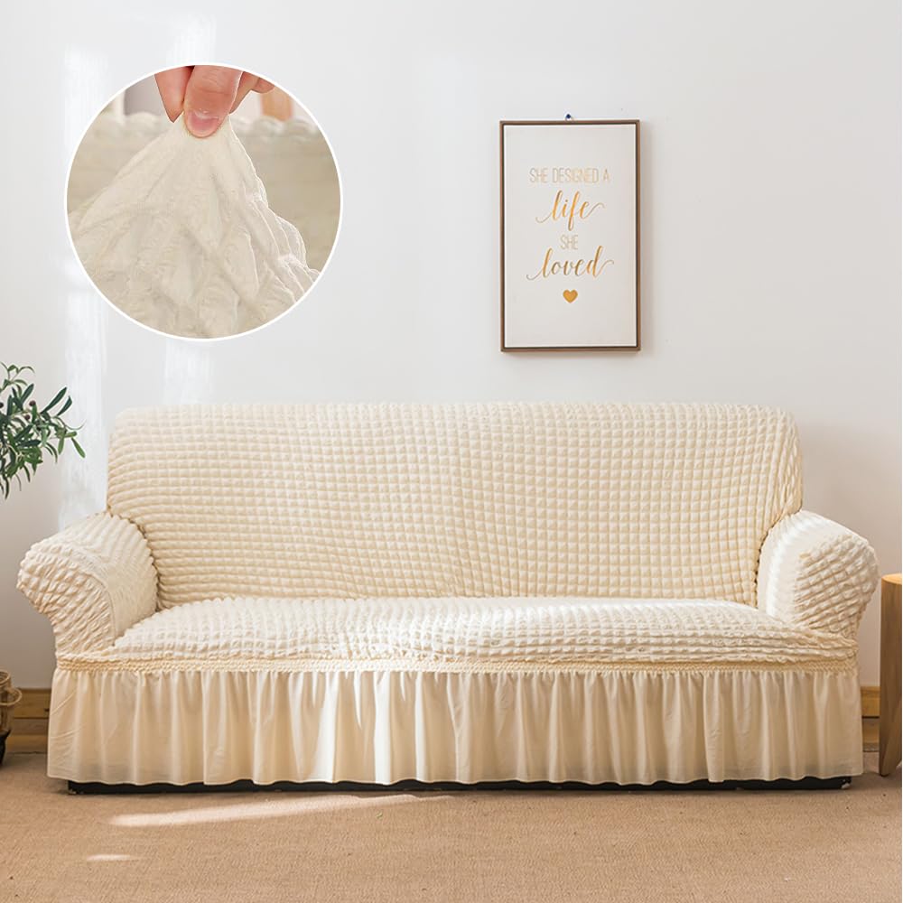 おしゃれなデザイン:裾はスカートデザインで、質感のある生地、毛玉なし、色あせなし、水で洗っても縮みません、リビングルームを瞬時に蘇らせます。四季節も通用でき、防塵、キズ防止などの機能あり、ソファーをしかっりと保護できます。