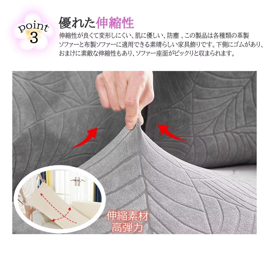 【伸縮素材&耐磨耗性 】素材: 高品質95%ポリエステル+5%スパンデックス、ソファーカバーは抜群の伸縮性を持っています。生地が柔らかくて快適で優しい肌触り感。北欧とおしゃれを兼ね備えています。ペットのいる家族はもソファーの心配はありません!肌に優しい、伸縮性も良く(耐磨耗性が高い)、ソファカバーが変形しにくい、簡単に着脱でき、肘付きソファーに適用します。 家にペットと育ち盛りのお子様いつても安心して使用できます。