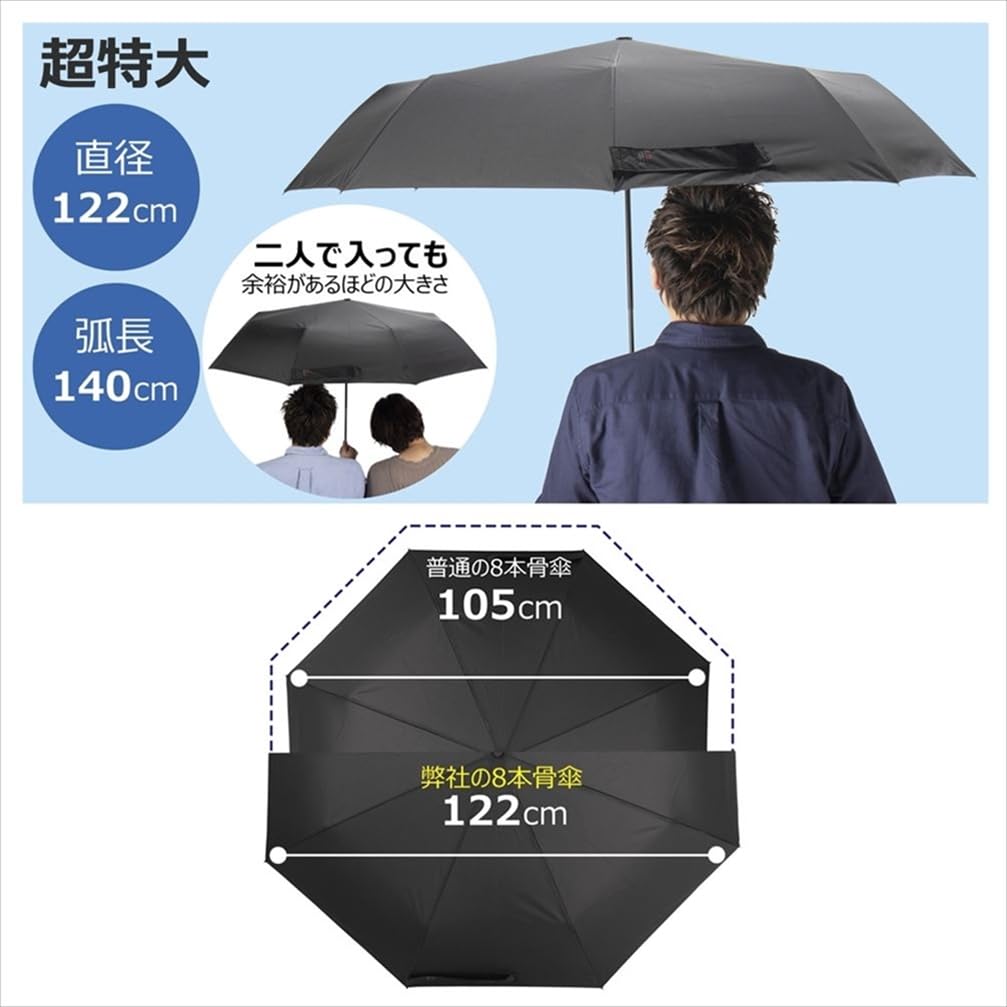 【濡れにくい大判サイズの122cm】折りたたみ傘ですが、開いた時のサイズが約122cmと非常に大きくなっています。サイズ感としては通常の大判紳士傘と比較しても遜色ない仕様なので、荷物を持ってさしていてもほとんど濡れません。また、折りたたむと30cmほどのサイズなので、カバンなどに入れて持ち運びしやすくなっています。また、太めのバンドになっているので、傘は大きいですが、留めやすくなっています。【収納しやすい共袋】共袋の横がほぼ全面開くので、畳んだ傘がしまいやすくなっています。また、大きめの面ファスナーで袋の横を止めるタイプなので、多少太めに畳んでも収納できるようになっており、急いでいる時などにも便利です。【日本の老舗傘メーカーのこだわりのメンズ傘「彗」】シンプルなデザインでシーンを選ばず使えるメンズ傘シリーズです。ワンポイントでバンドに入っている鮮やかな赤色のロゴがアクセント。無駄のないシンプルなデザインはビジネススタイルにもぴったりです。なお、生地や骨などの性能は、2021年12月10日に、第三者検査機関にて検査を実施済みです。【高い品質の商品】弊社商品はお客様に高品質の商品をお届けできるよう、工場・倉庫などだけでなく、外部の検査機関に生地検査・製品検査を依頼しており、遮熱遮光や撥水機能などは検査にて実証されたものだけを謳っております。これらの品質や安全面もあり、一部商品は百貨店様などでもお取り扱いいただいております。これらのようにお客様に満足していただけるよう、最大限不良率を下げる努力はしておりますが、万が一商品に不都合な点等ございましたら、ヘルプよりアマゾンカスタマーサービスにご連絡お願い致します。商品到着から30日以内でしたら、返金・交換対応承ります。方法等につきましてはヘルプページ参照お願い致します。【サイズ】[親骨の長さ]:70cm[全長の長さ]:約70.5cm[折りたたんだ時の長さ]: 約29.5cm[直径]:約122cm[留めバンド太さ]:約4cm[持ち手の長さ]:約2.5cm[持ち手の太さ]:約3.5cm[石突の長さ]:約0.3cm[収納袋のサイズ]:約29x8cm[シリコンロゴ]:3×3cm※サイズは当店平置き実寸サイズです。【仕様】開閉:手開き留め具:面ファスナー素材:ポリエステル100%