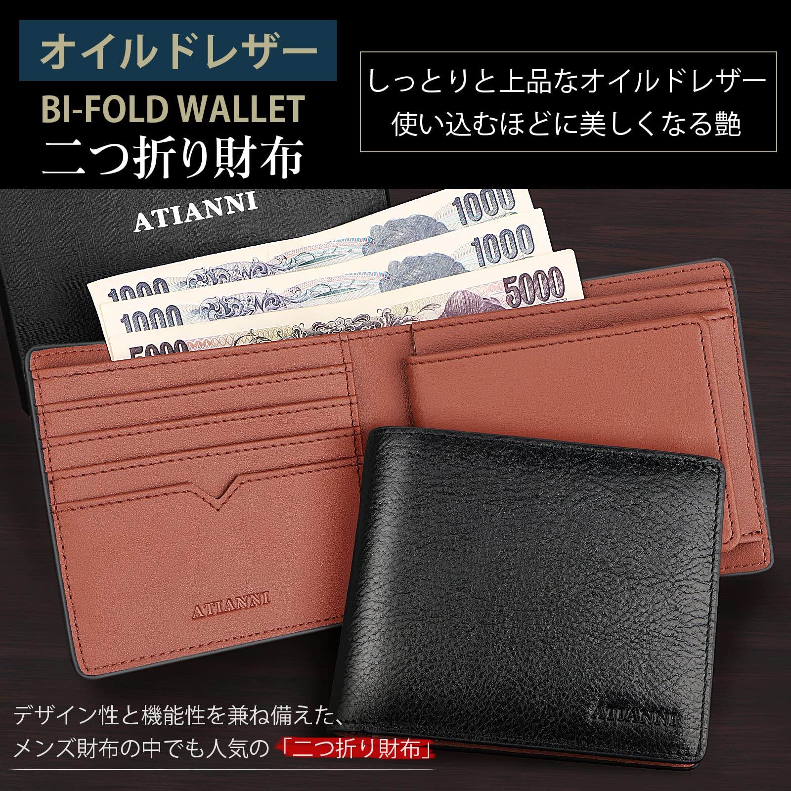【2022最新】[ATIANNI] 財布 メンズ 2つ折り 本革 オイルドレザー 薄い ボックス型小銭入れ RFID&磁気スキミング防止 大容量 一流 の 財布 職人 が 作る 二つ折り財布 ふたつおり サイフ コンパクト (Black) | libertyislan
