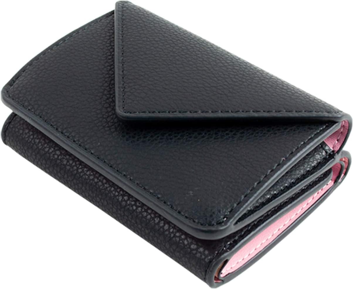 [MALTA] ミニ財布 三つ折りメンズ レディース コンパクト 小さい レザー 牛革 ボタン型 小銭入れ カード入れ 大容量 ブラックピンク