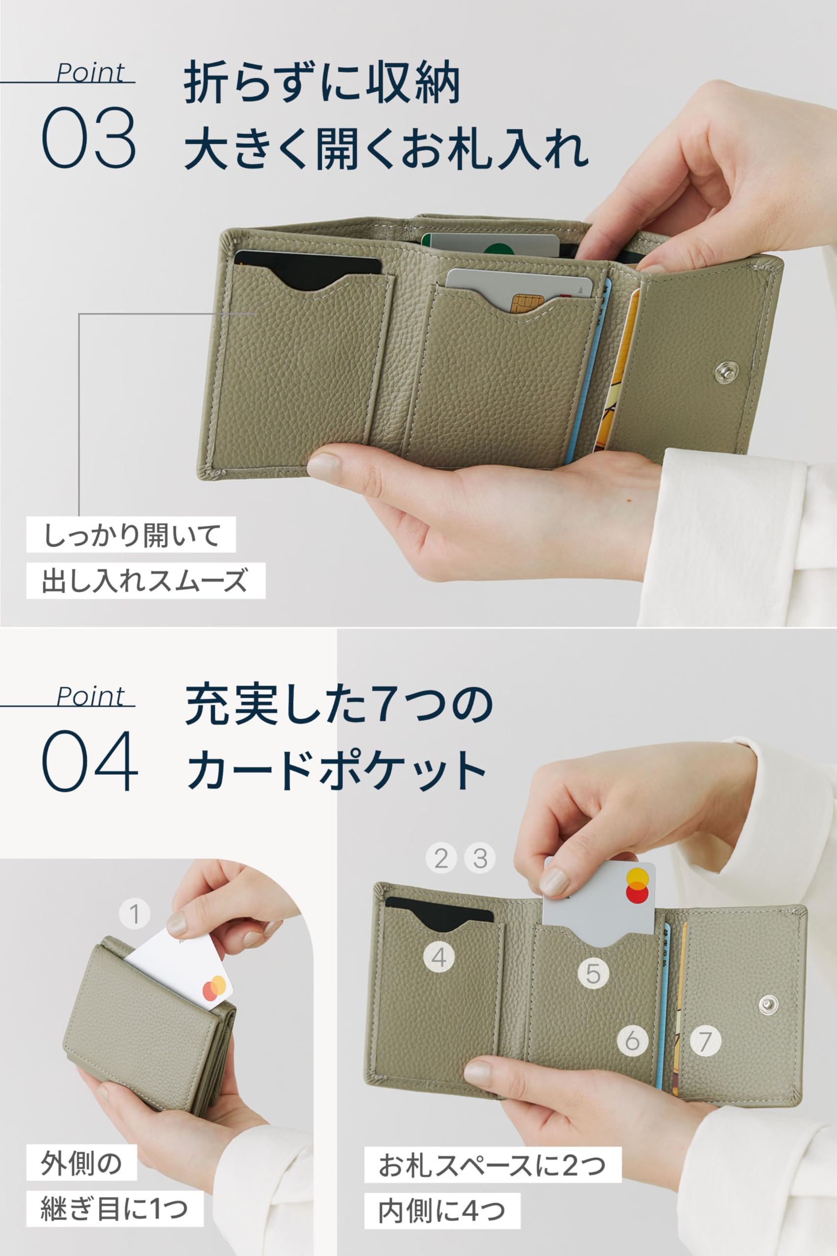 【長財布のスペックを極小サイズで】手のひらサイズ なのに 長財布 並みの収納。 小銭は30枚以上、お札10枚以上、カードも最大7枚入ります。 メインの 財布 として十分な 容量 で設計いたしました。