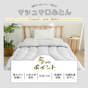 【柔らかい触感 軽やかな体験】ピーチスキン加工を表生地に施し、柔らかく滑らかな肌触りに。ほこりが出にくい、綿切れしにくい、中空ポリエステル綿を使用。フワっと軽く体を包んでくれるので、よりリラックスした眠りに。女性でも持ち運びラクラク!来客用にもピッタリです。