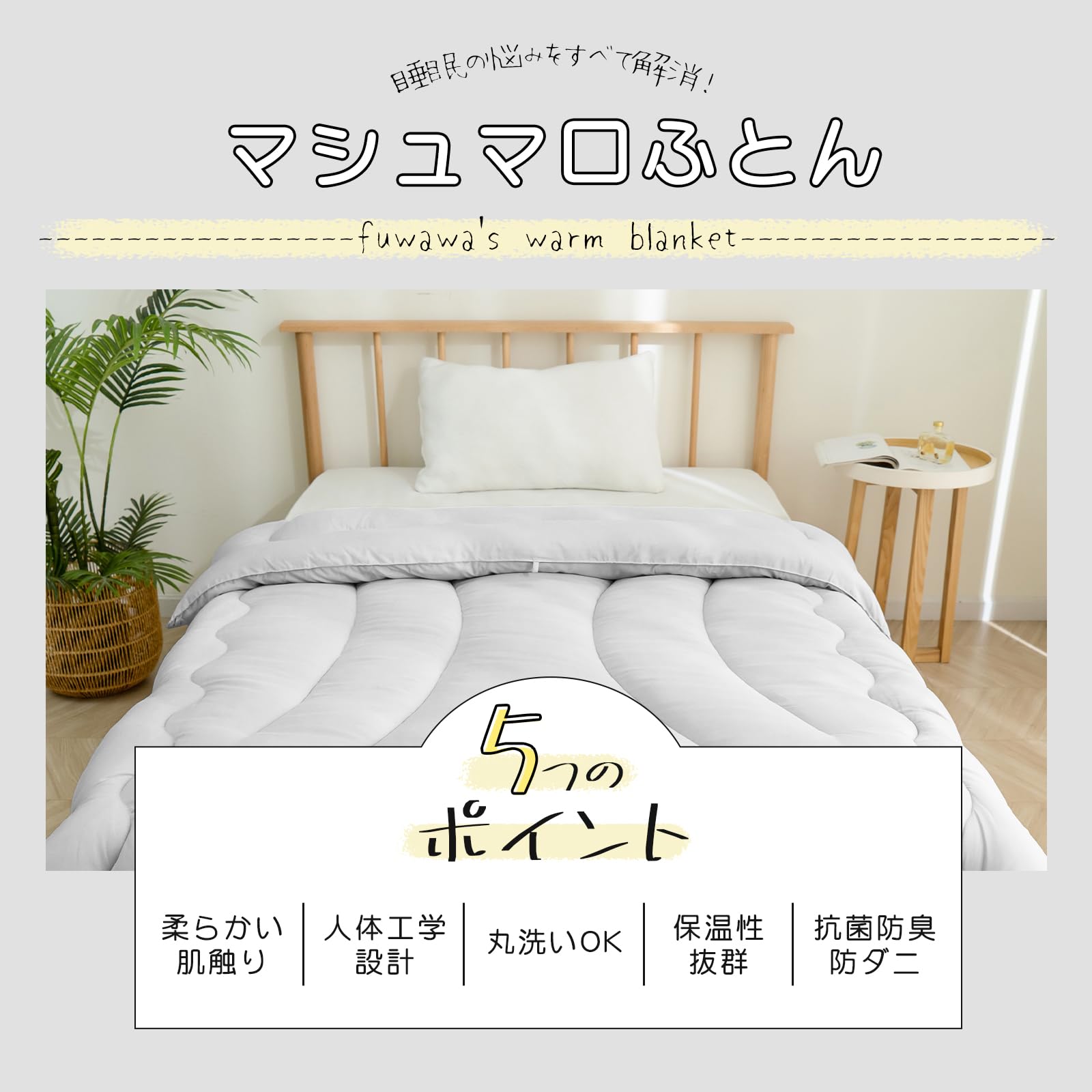 【数量限定】fuwawa 掛け布団 シングル オールシーズン 合掛け布団 春秋向き かけ布団 軽量 冬 ふとん 抗菌防臭・防カビ・防ダニ 帝人マイティトップⅡECO使用 SEK認証 通年 掛けふとん ピーチスキン加工 布団 ほこりが出にくい 洗える ボリューム かけふとん(150x210cm グレー)