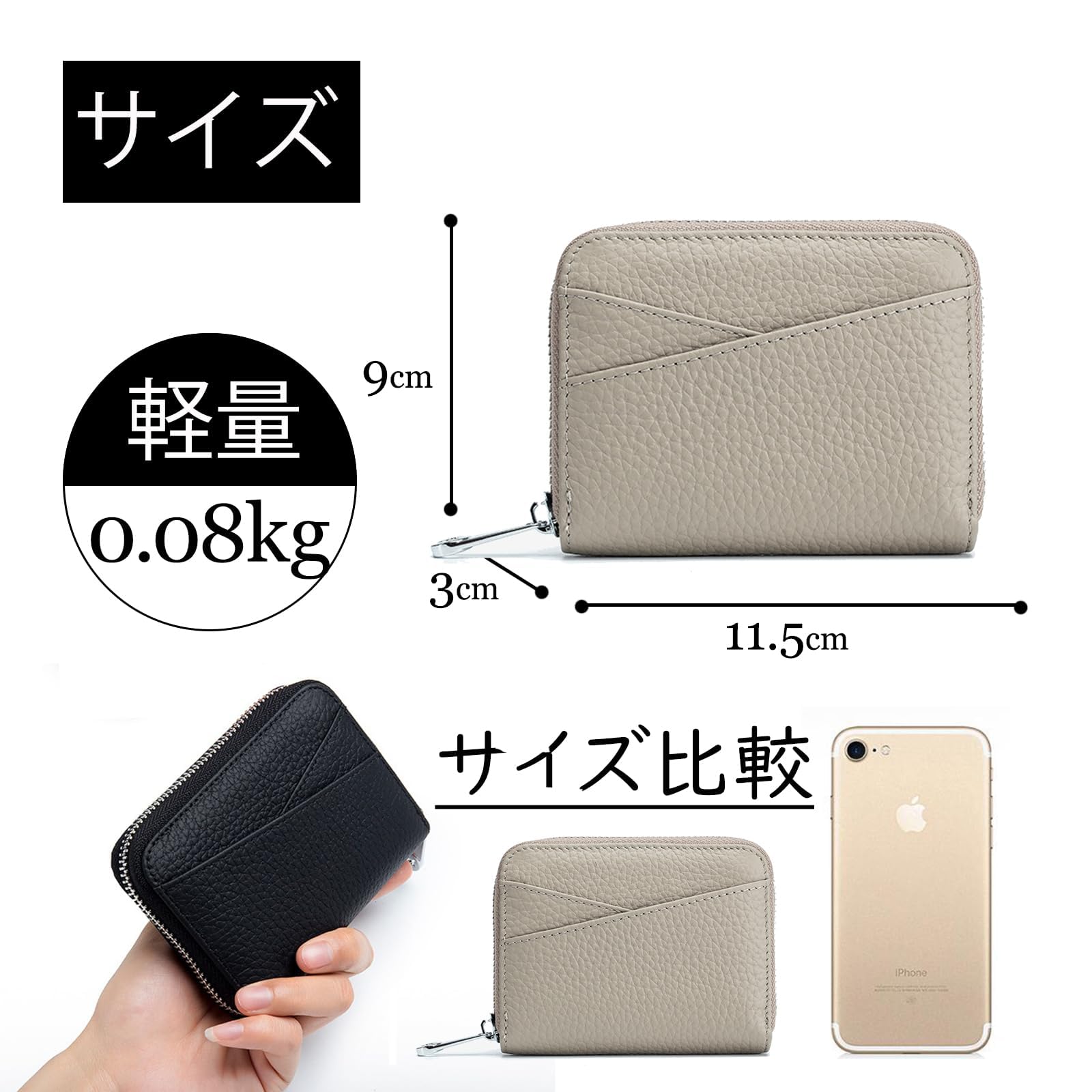 【ミニ財布】サイズ:長さ11.5cm*幅3cm*高さ9cm。重さ:82g。